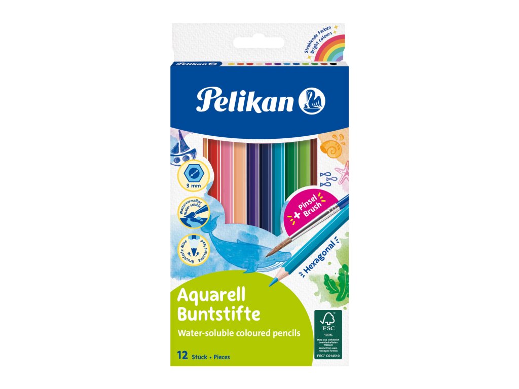 šestihranné tenké, měkké, vysoce kvalitní tuha o síle 3 mm, lesní certifikace FSC, včetně vlasového štětce s plastovou rukojetí, lakované, v krabičce s plastovou výplní, na blistru, Pelikan