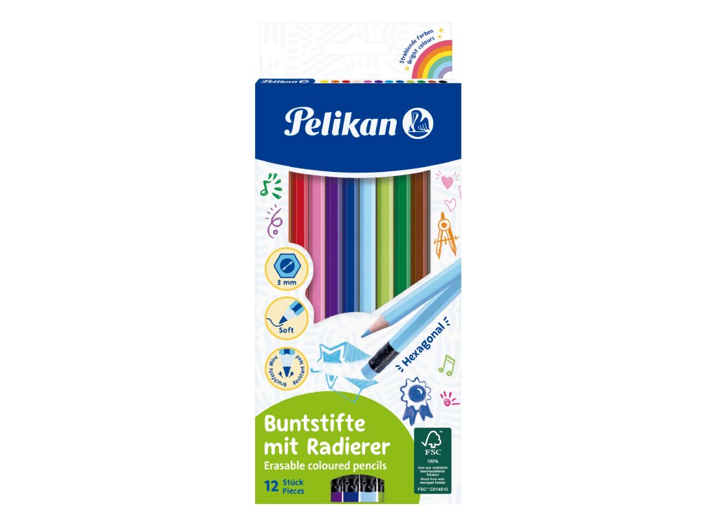 šestihranné tenké, s barevnou gumou na každé tužce, lakované, odolné proti zlomení, kvalitní tuha o síle 3 mm, lesní certifikace FSC, v krabičce na blistru, Pelikan