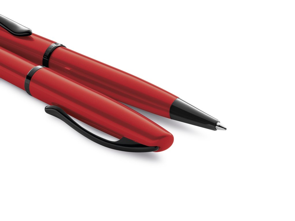 je charakteristické zakřivenými liniemi, díky nimž je pero lehké a živé. Perleťově lakovaný horní a spodní válec dokonale se zbarveným hrotem, prstenem a klipem. Typická spona ve tvaru zobáku.