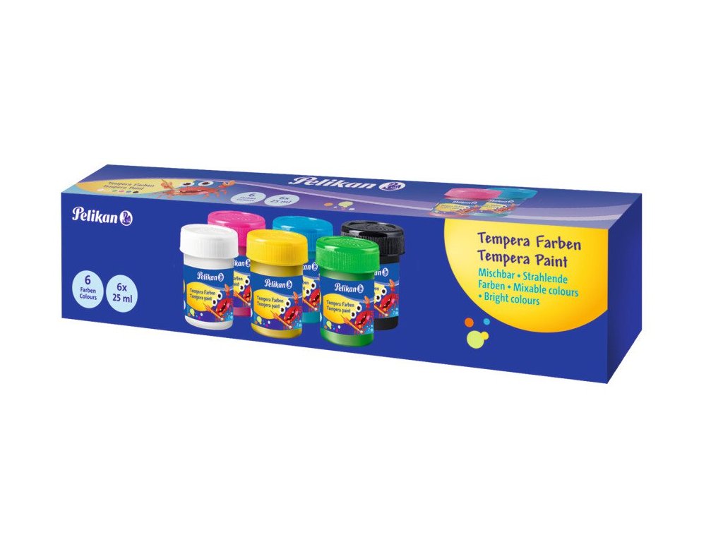 sada 6 barev, v kelímcích po 25 ml, husté a vodou ředitelné, v krabičce