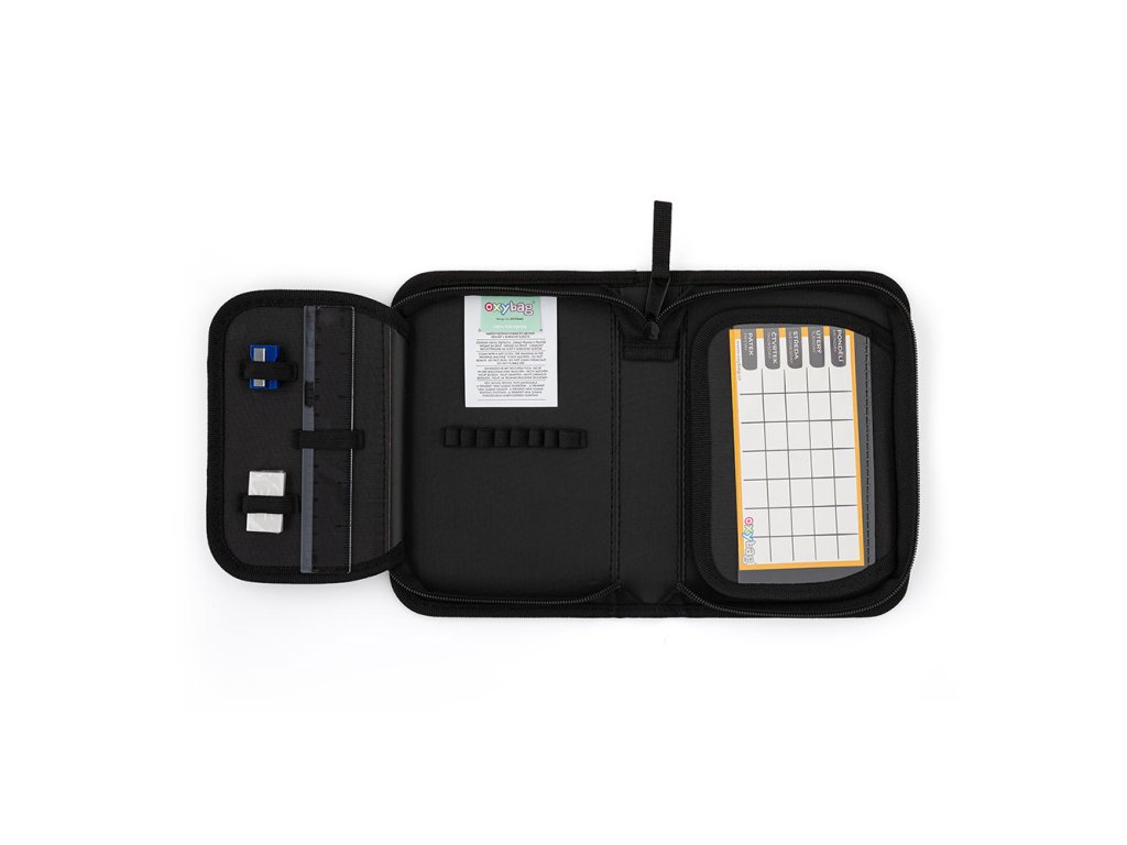Jednopatrový školní penál s 2 chlopněmi řady UNICOLOR, prázdný, obsahuje 25 gumových poutek pro uchycení psacích potřeb. Na vnitřních chlopních jsou průhledné fólie pro rozvrh hodin.Doplňkové parametry