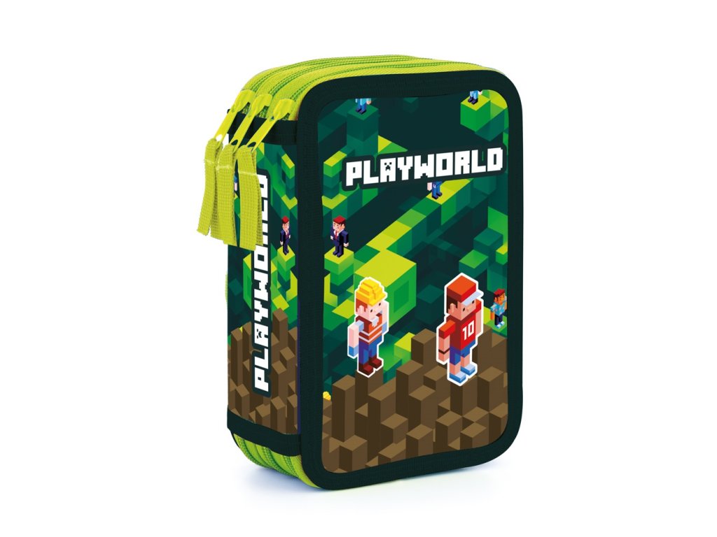 Školní penál třípatrový bez náplně. Penál obsahuje 41 gumových poutek pro uložení všech psacích potřeba a drobností potřebných k výuce. Penál má pevný zip s velkými taháčky pro snadnou manipulaci. Jedno patro je opatřeno průhlednou přihrádkou pro týdenní rozvrh.