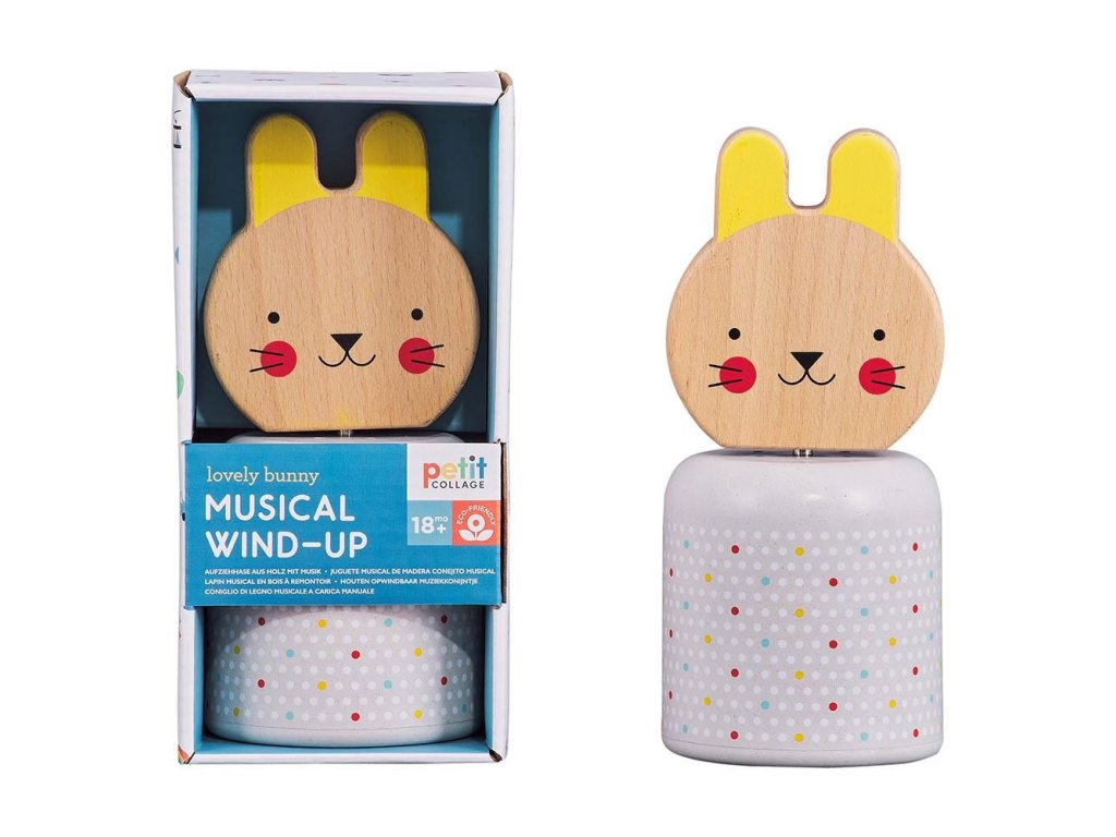 Petit Collage Dřevěná hrací postavička Zajíček - kreativní hudební hračka pro děti od 18 měsíců. Zajíček otáčí hlavičkou a hraje uklidňující uspávací melodii. Hlavní vlastnosti: Hlava zajíčka vyrobena z kvalitního certifikovaného FSC dřeva, tělo je vyrobeno z MDF dřeva a bioplastuHraje 3 minuty ukolébavkyBarveno šetrně k životnímu prostředí, potištěno rostlinnými inkoustyBaleno ve 100% recyklovatelných obalech Značka a certifikát FSC® (Forest Stewardship Council) zaručuje, že dřevo, ze kterého byl produkt vyroben, nebylo vytěženo nelegálně a pochází z lesů obhospodařovaných šetrným či přírodě blízkým způsobem, ve kterém jsou dodržovány přísné environmentální a sociální požadavky. Značka FSC® na výrobku znamená, že svým nákupem pomáháte chránit lesy a podporujete šetrné, odpovědné či přírodě blízké hospodaření, díky kterému jsou naše lesy stabilnější, zdravější, mají přirozenou druhovou skladbu a lépe odolávají negativním následkům klimatických změn.Doplňkové parametry