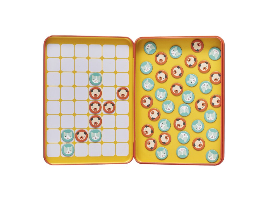 Kočky versus psi! Magnetická hra perfektní na cesty. Zkuste postavit do řady 4 kočky či psy za sebou, jsou to v podstatě zvířecí piškvorky... Hlavní vlastnosti: Skvělá cestovní hračka v kovové krabičce Natištěno netoxickými barvami, které berou v potaz zdraví dětí a planetuDoplňkové parametry