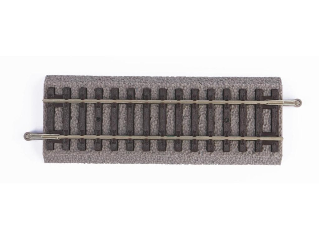 Přímá kolej s detailní reprodukcí dřevěných pražců na štěrkovém podloží, ve věrných barvách. Hlavní vlastnosti: délka 115 mmvčetně podloží Dokumentace: Brožura ke kolejivu PIKO H0 A-Gleis (DE, EN)Doplňkové parametry