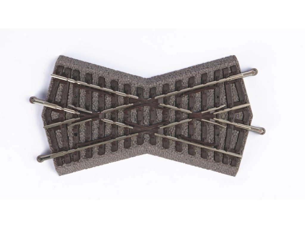 Křižovatka s detailní reprodukcí dřevěných pražců na štěrkovém podloží, ve věrných barvách. Kombinuje dvojici přímých kolejí G119 svírajících úhel 30°. Hlavní vlastnosti: 30° délka 119 mmvčetně podloží Dokumentace: Brožura ke kolejivu PIKO H0 A-Gleis (DE, EN)Doplňkové parametry