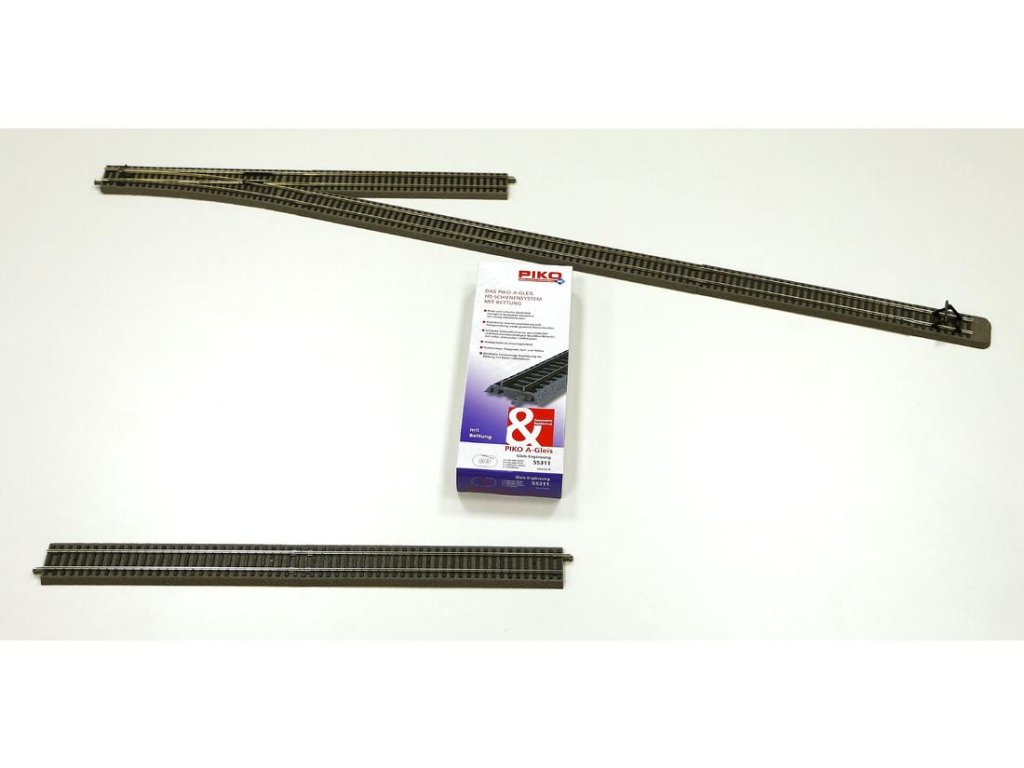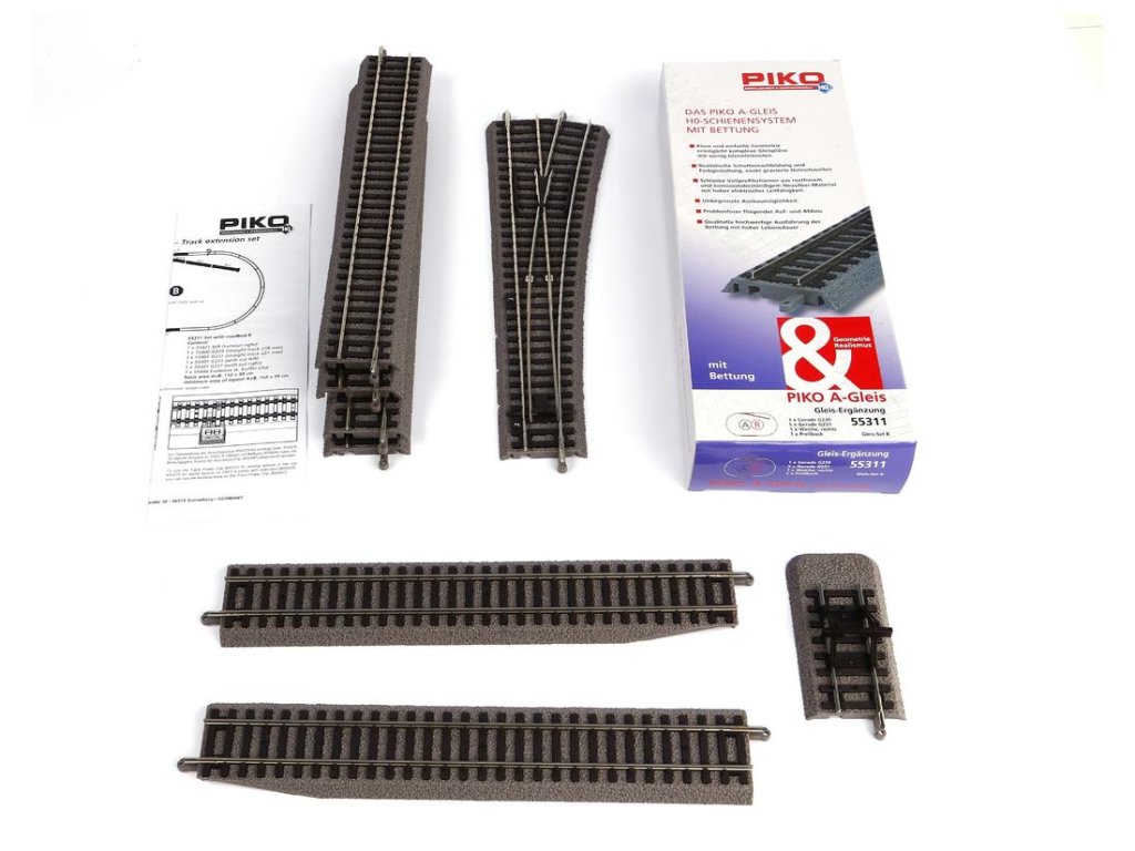 Sada kolejí s detailní reprodukcí dřevěných pražců na štěrkovém podloží, ve věrných barvách. Zahrnuje dvojici rovných úseků s jednoduchou výhybkou na kusou kolej. Ke kompletaci samostatně napájeného oválu (viz ilustrační obrázek) nutno doplnit o obloukové koleje v příslušném množství a dvojici rovných kolejí, jedné s přípojem pro napájecí svorku. Výhybku lze ručně ovládat. Nabízí se také dálkově ovládaný přestavník, pro který je zde uchystané připojení a je vhodné jej doplnit příslušným podložím. Plocha základny: 158x88 cmMinimální konstrukční plocha: 168x98 cm Hlavní vlastnosti: dva rovné úseky s výhybkou na kusou kolejvčetně podloží Tato sada obsahuje: kolej rovná G239 s podložím - 55400 (1 ks)kolej rovná G231 s podložím - 55401 (3 ks)kolej rovná G231 (s vybráním vlevo) s podložím - 55401 (1 ks)kolej rovná G231 (s vybráním vpravo) s podložím - 55401 (1 ks)výhybka WR jednoduchá (G239/R9) pravá s podložím - 55421 (1 ks)kusá kolej se zarážedlem s podložím - 55446 (1 ks) Dokumentace: Návod k obsluze (DE, EN)Brožura ke kolejivu PIKO H0 A-Gleis (DE, EN)Doplňkové parametry