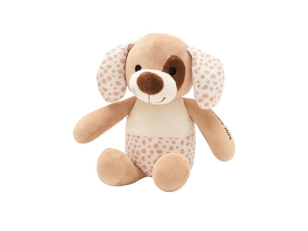 Pejsek o rozměrech 26 × 8 × 16 cm se skvěle vejde do malých ručiček, což ho činí ideálním společníkem na mazlení, nošení a objevování světa. Jeho přívětivý vzhled, jemné barvy a měkká struktura stimulují smysly dítěte a podporují jeho emoční a smyslový vývoj.