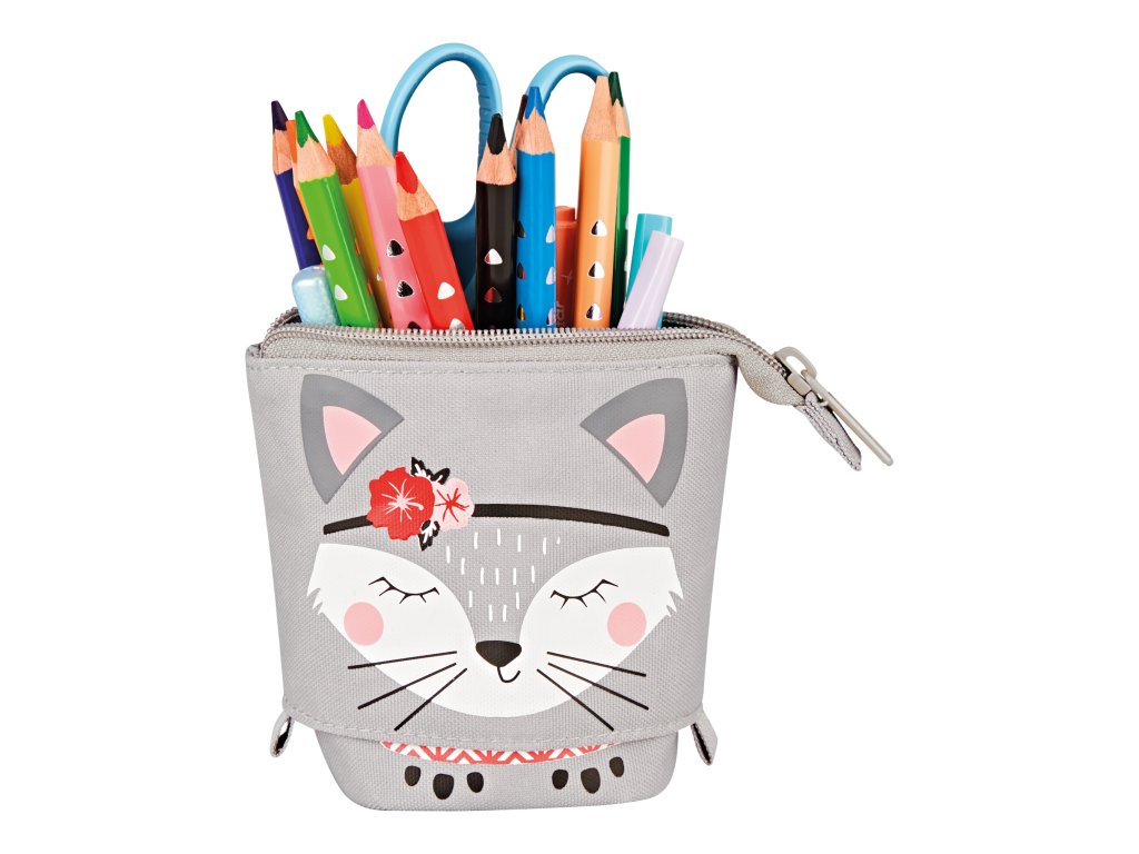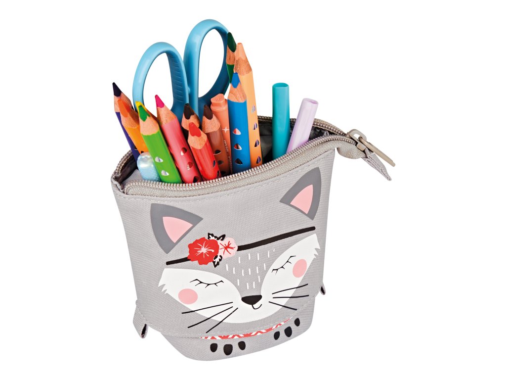 14 x 7,5 x 18,5 cm, praktické pouzdro na tužky 2 v 1, 1 hlavní komora se zipem, horní část lze stlačit dolů, stabilní