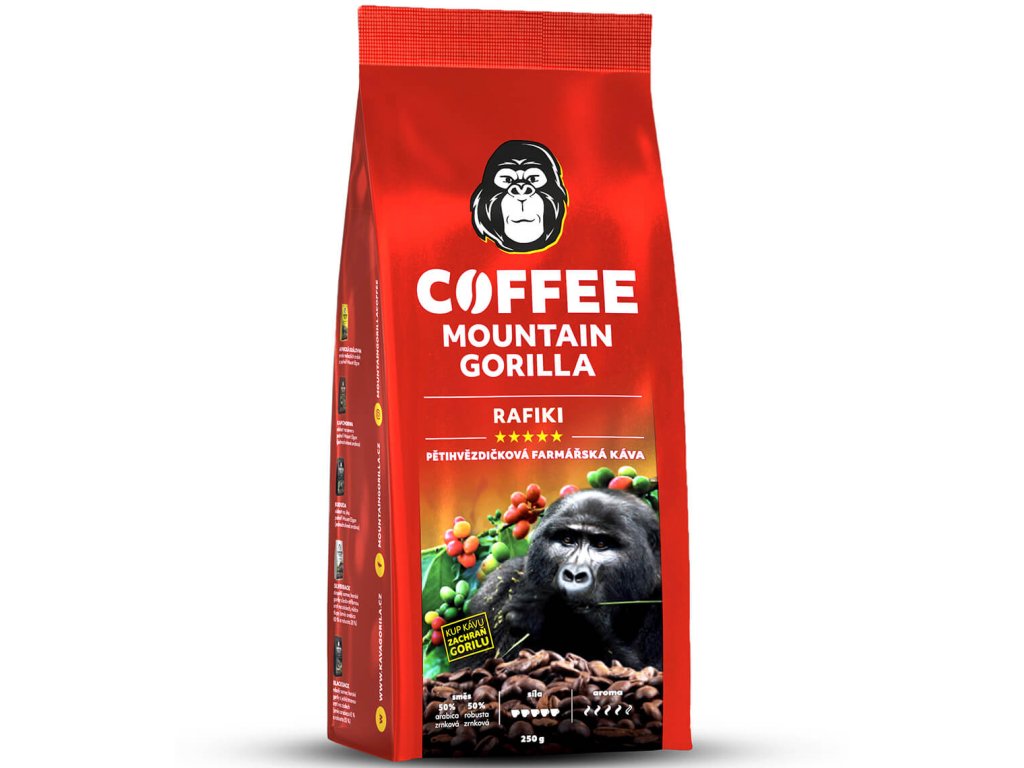 Zakoupením kávy Mountain Gorilla Coffee - Rafiki pomůžete veterinářům z organizace Gorilla Doctors, kteří se starají o poslední horské gorily v ugandských horských pralesech. Věnujeme jim 1 % z prodejní ceny této kávy.