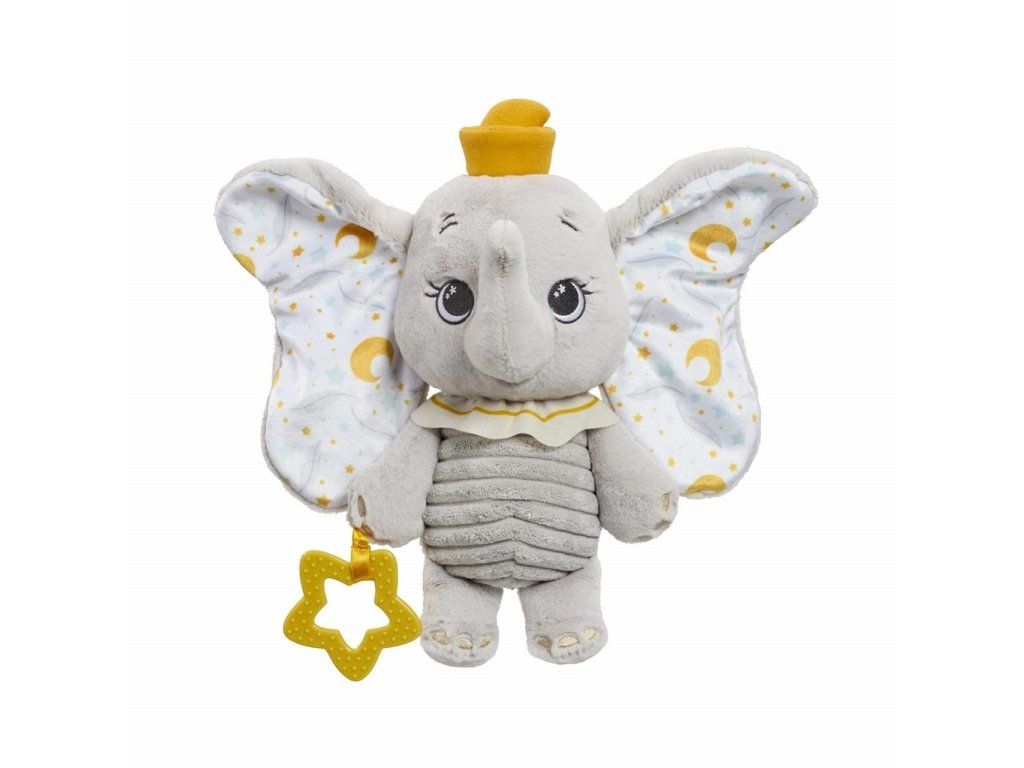 Seznamte se s první mazlivou hračkou vašeho miminka. Děti si zamilují tuto plyšovou hračku, sloníka Dumba. Tento jemný plyšový kamarád je vyroben z mimořádně hebkého, pro miminka bezpečného materiálu a zdobený decentní výšivkou, která je šetrná i k citlivé dětské pokožce.Roztomilý sloník s ikonickými velkými oušky a milým výrazem přináší dokonalou kombinaci hebkosti a hravosti. Díky různorodým texturám, štítkům a kousátku ve tvaru hvězdičky pomáhá nejen zklidnit citlivé dásně, ale také podporuje raný smyslový vývoj dítěte.Lehký a ideálně přizpůsobený malým dětským ručičkám podporuje samostatné uklidnění a stane se oblíbeným společníkem při usínání, odpočinku i na cestách. Díky kvalitě a tradici značky Disney jde o nadčasovou hračku, která přináší pocit bezpečí, radosti a kouzlo oblíbených příběhů už od prvních dnů. Hlavní vlastnosti: extra jemný, pro miminka bezpečný plyšový materiál šetrné vyšívané detaily vhodné pro citlivou pokožku ikonický design sloníka Dumba s velkými oušky různorodé textury a štítky pro smyslový rozvoj kousátko ve tvaru hvězdičky pro úlevu při růstu zoubků vhodné pro uklidnění, usínání i cestování kvalita a důvěryhodnost značky Disneyrozvíjí motoriku dítětetrénuje koordinaci ruka-okoDoplňkové parametry