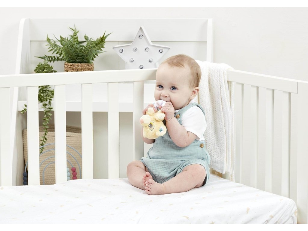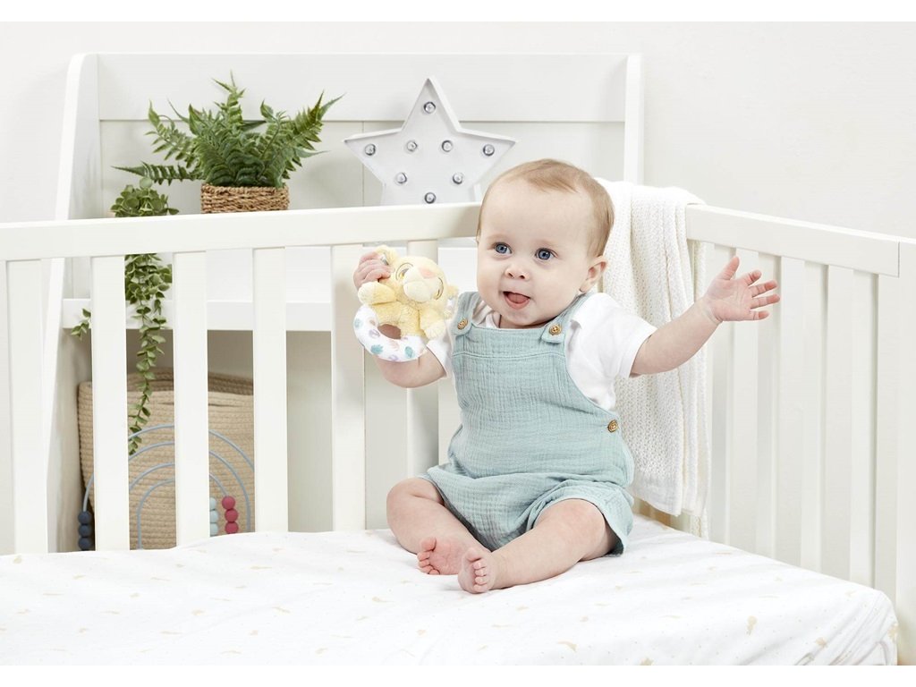 Toto měkoučké chrastítko s motivem lvíčete Simby ze známého animovaného filmu Lví král má ideální velikost pro malé dětské ručičky. Díky příjemnému plyšovému materiálu, přírodním barvám a jemnému chrastění si ho děti jistě zamilují. Chrastítko stimuluje děti, aby pomocí svých smyslů zkoumaly svět kolem sebe. Toto chrastítko je vhodné od narození a je tedy skvělým dárkem pro novorozence. Hlavní vlastnosti: vhodné od narozeníperfektní jako dárek napomáhá k rozvoji smyslůDoplňkové parametry