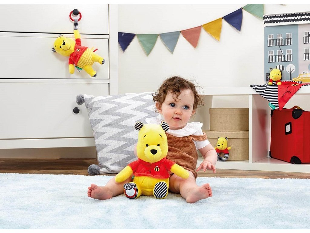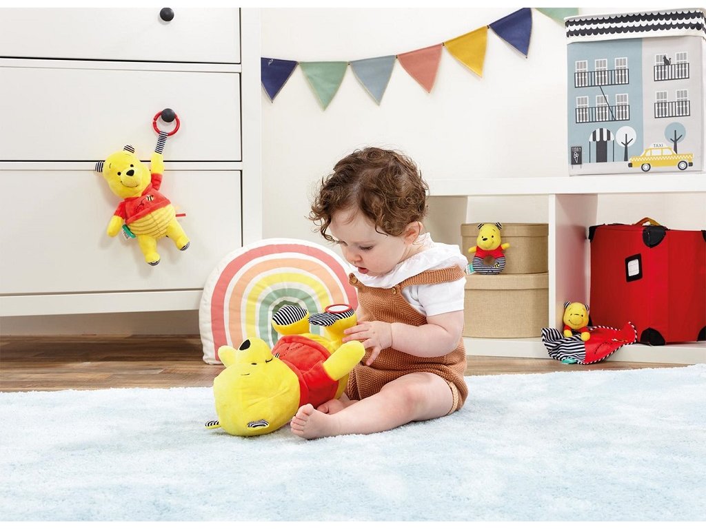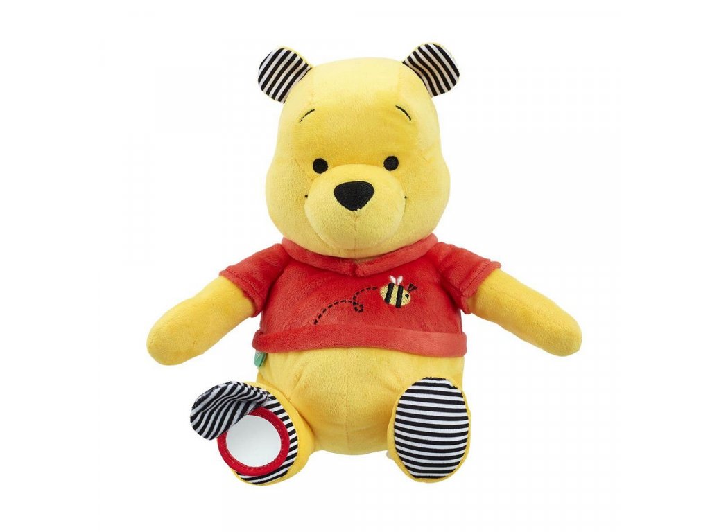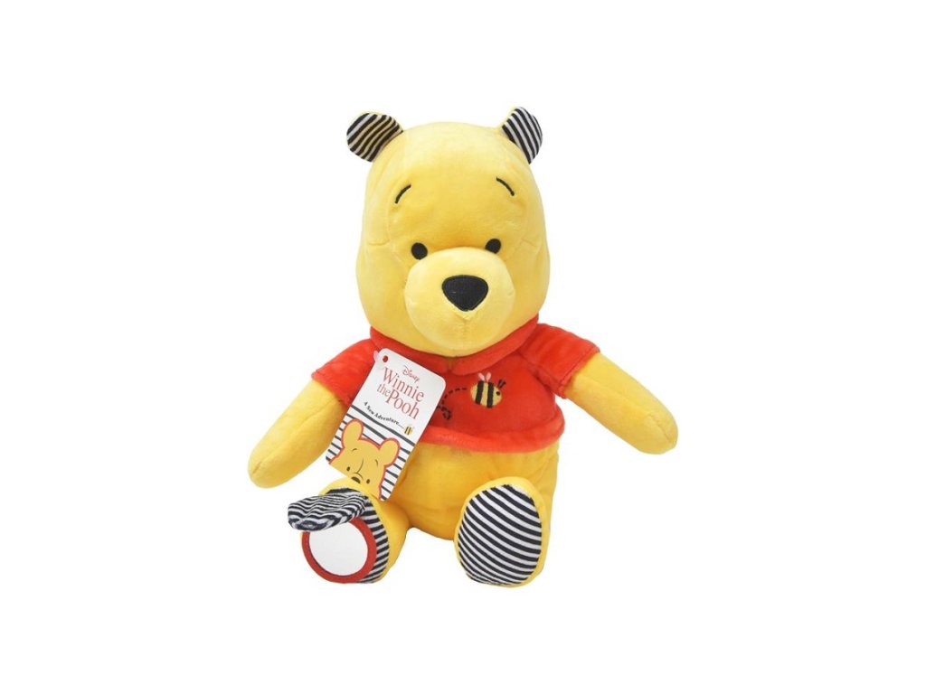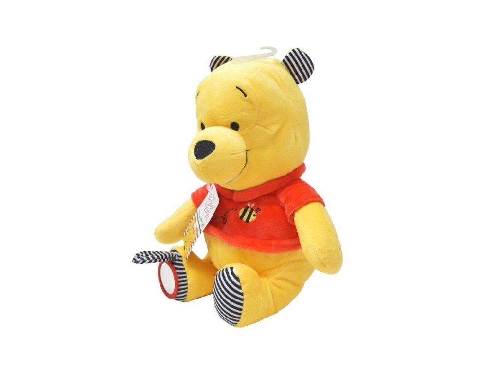 Všichni milují Medvídka Pú od Disneyho a tato plyšová hračka je dokonalým společníkem, který zabaví ty nejmenší. Medvídek má jasně červený svetřík s včelou medonosnou a stimulující černobílé pruhované uši a tlapky. Na jedné tlapce je malé zrcátko. Hračka byla vytvořena pro podporu raných vývojových dovedností dítěte. Hlavní vlastnosti: vhodné od narozeníroztomilá plyšová hračka v sytých barváchideální jako dárek pro miminkostimuluje smyslyDoplňkové parametry