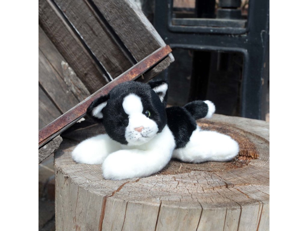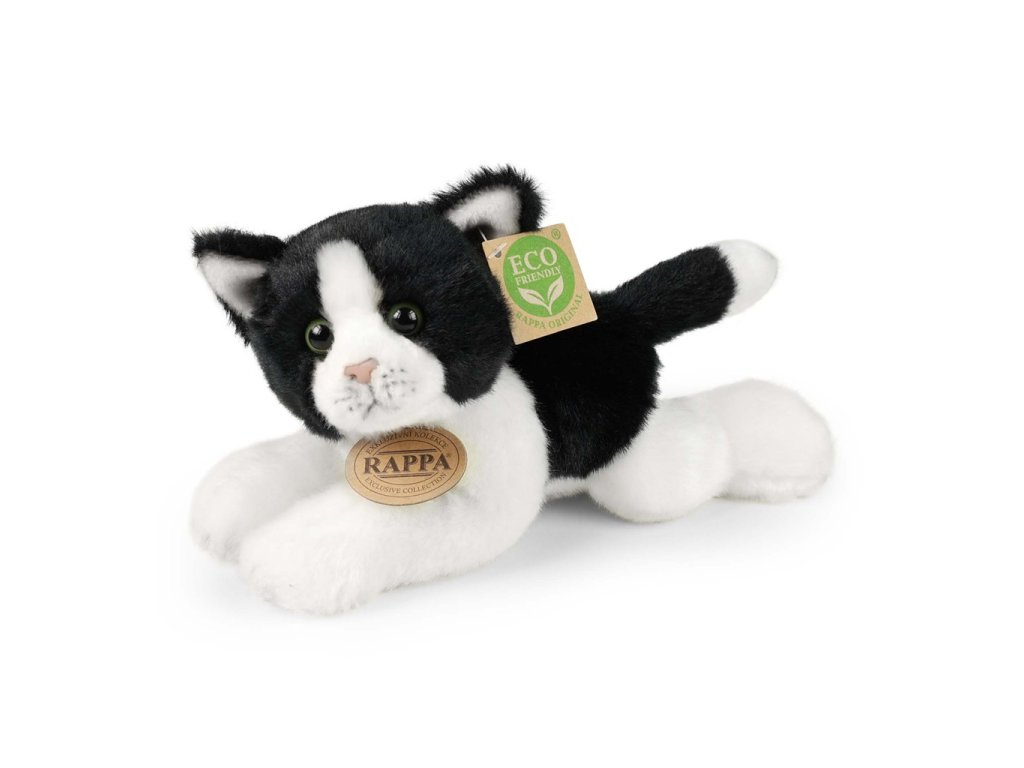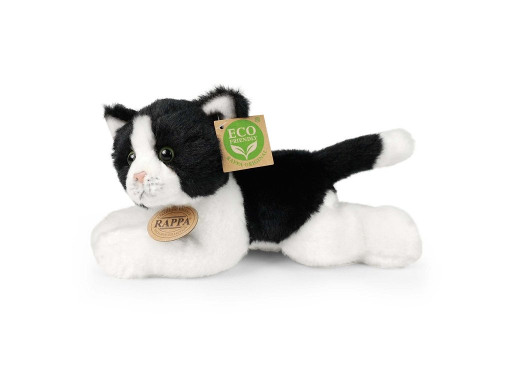 Rappa Plyšová kočka bílo-černá ležící 16 cm ECO-FRIENDLY