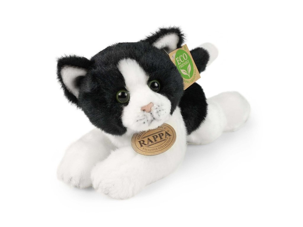 Rappa Plyšová kočka bílo-černá ležící 16 cm ECO-FRIENDLY Nádherná plyšová kočka o délce 16 cm. Kočka je vyrobena z vysoce kvalitní plyše a je tak součástí exkluzivní kolekce plyšových hraček. Hlavní vlastnosti: ECO-FRIENDLY Co to vlastně ECO-FRIENDLY znamená? Výplň plyšové hračky je vyrobena z recyklovaných PET lahví. Tento materiál je zcela bezpečný, na omak nerozeznatelný od standardní výplně a plně atestovaný pro bezpečnost i těch nejmenších. Rozhodli jsme se jít zelenou cestou co nejméně zatěžující životní prostředí- cestou ECO-FRIENDLY.Doplňkové parametry