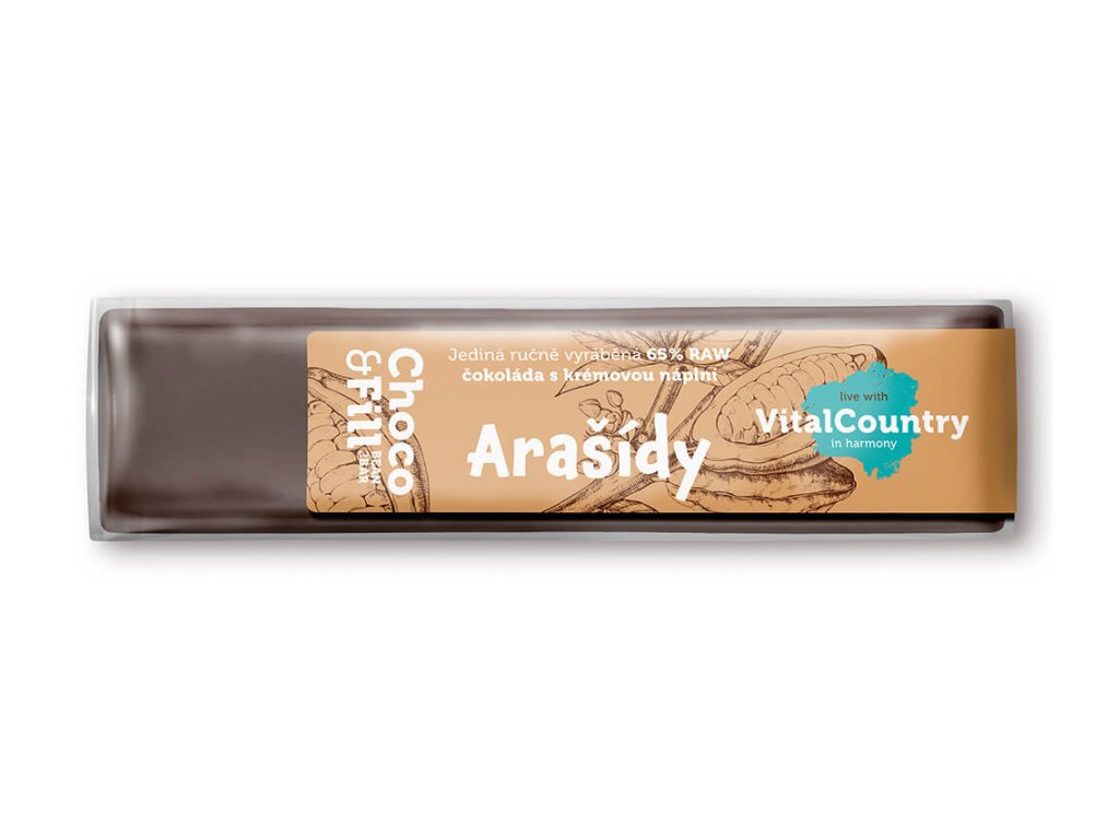 RAW plněná čokoláda 65 % Arašídy 30 g – Choco&Fill