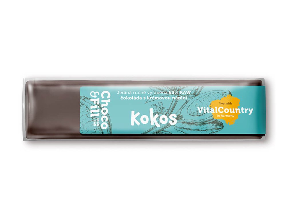 RAW plněná čokoláda 65 % Kokos 30 g – Choco&Fill