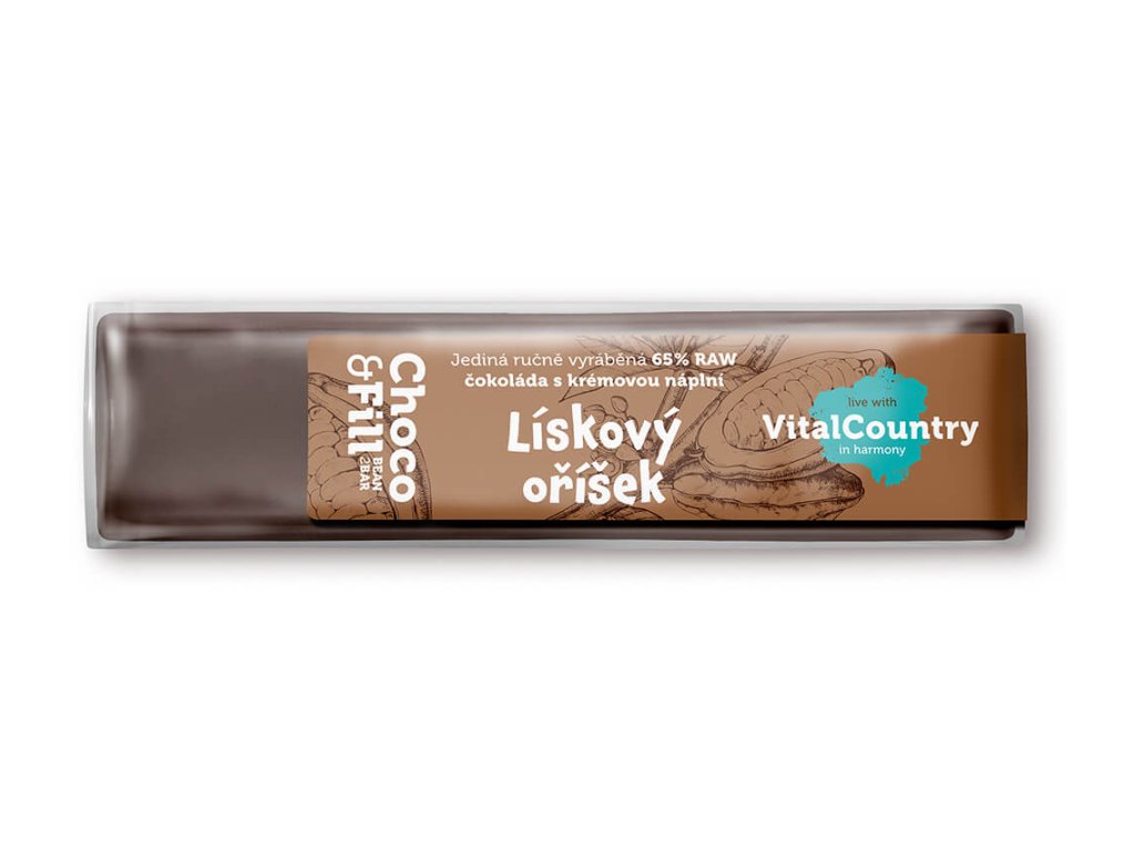 RAW plněná čokoláda 65 % Lískový oříšek 30 g – Choco&Fill