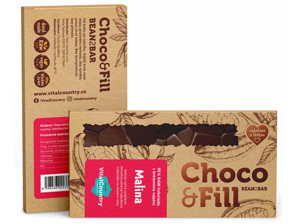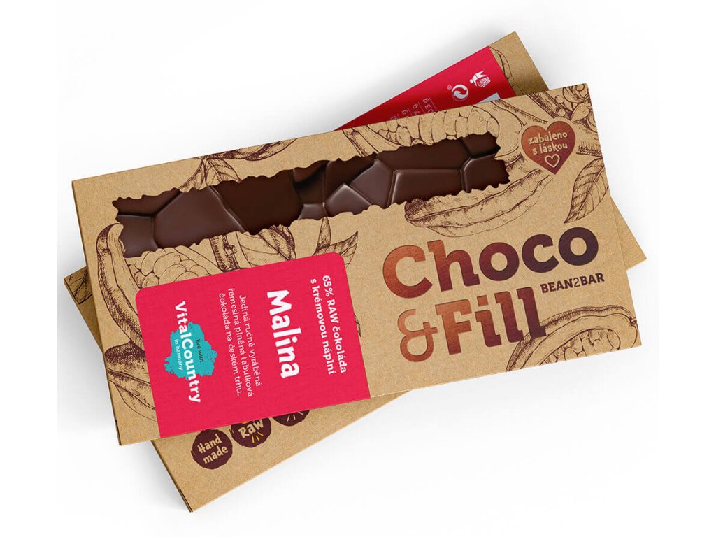 RAW plněná čokoláda 65 % Malina – Choco&Fill