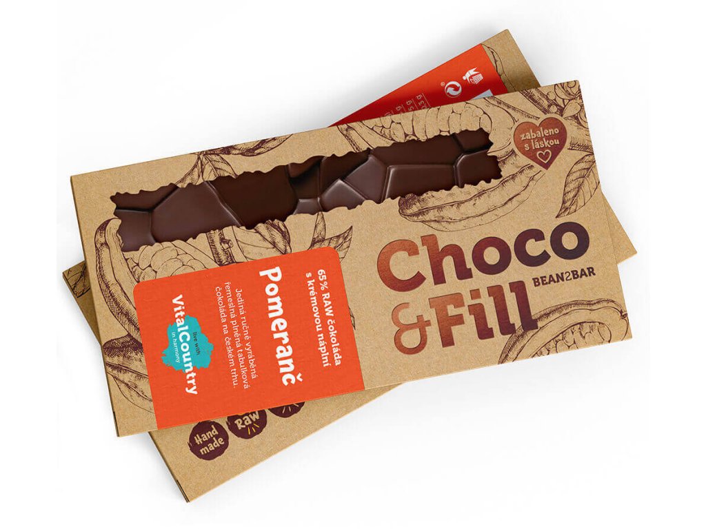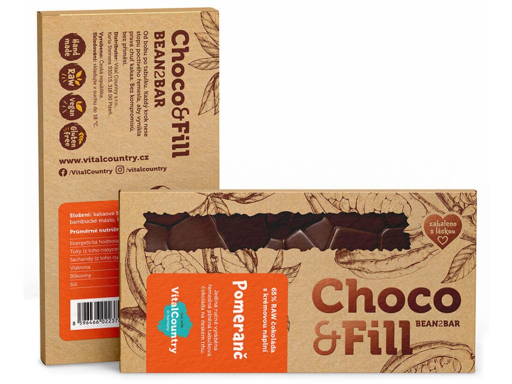 RAW plněná čokoláda 65 % Pomeranč – Choco&Fill