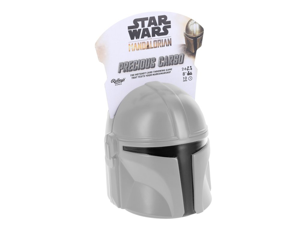V detailně zpracované helmě známého lovce odměn z předaleké galaxie k Vám přichází jednoduchá a rychlá karetní hra, která prověří Vaši obratnost! Kdo bude mířit stejně přesně jako proslulý Mandalorian a získá nakonec tajemného a roztomilého Grogua? Nechejte se okouzlit atraktivními ilustracemi a zažijte výpravné dobrodružství za doprovodu svých oblíbených hrdinů a předmětů ze série Star Wars! Součástí balení je návod v anglickém jazyce. Hlavní vlastnosti:pro 2–6 hráčůherní doba cca 10 minutpraktické a atraktivní balení Pravidla hry: Před začátkem hry se hráči rozdělí do týmů podle příslušnosti k Mandalorianům, či Impériu a každému z nich připadne jeden vrhací disk s významnou postavou odpovídající strany. Doprostřed stolu se poté umístí disk s Groguem a kolem něj se v dostatečné vzdálenosti rozloží 15 náhodně vybraných karet, a to lícem dolů tak, aby nebyla vidět jejich hodnota. Hráči se poté střídají v hodech a snaží se, aby jejich disk dopadl na kartu, která odpovídá jejich příslušnosti. V případě úspěchu si hráč kartu vezme a ponechá, shora zamíchaného balíčku se přitom na vzniklé prázdné místo doplní další karta. Cílem snažení je získat karty o předem dohodnuté celkové hodnotě, do průběhu přitom mohou nepředvídatelně zasáhnout i karty speciálních akcí. Hráč, který drží karty o smluvené hodnotě, smí usilovat o vítězné získání Grogua. Pokouší se vrhat svůj disk tak, aby přistál na žetonu ve středu hrací plochy – to ovšem není vůbec snadné! Tak nechť Vás provází síla!Doplňkové parametry