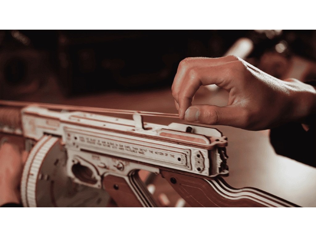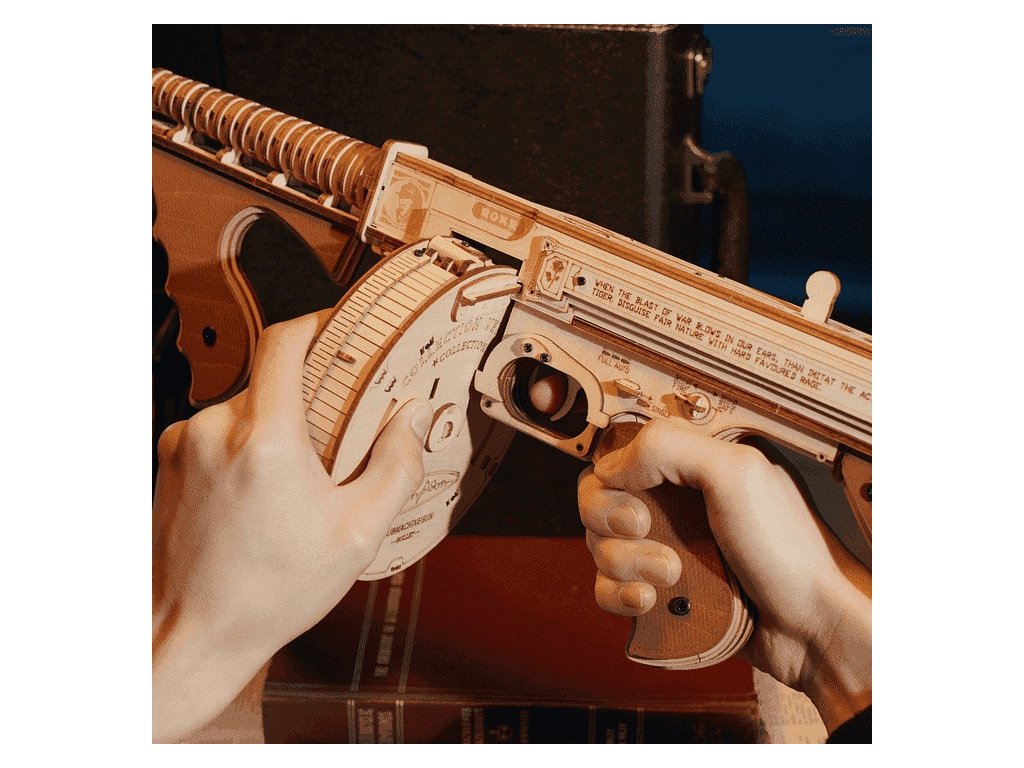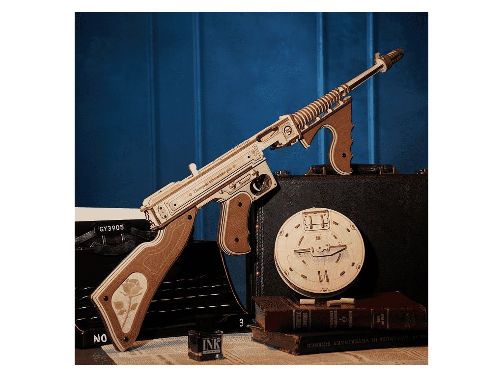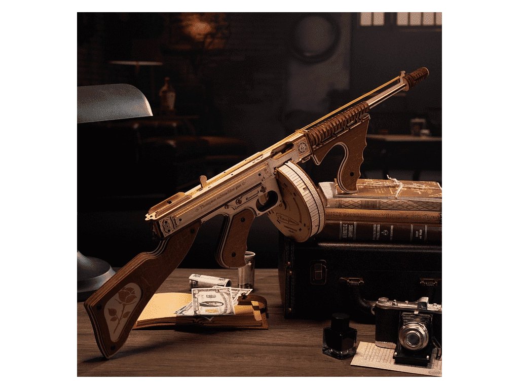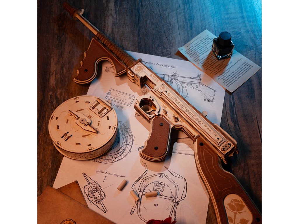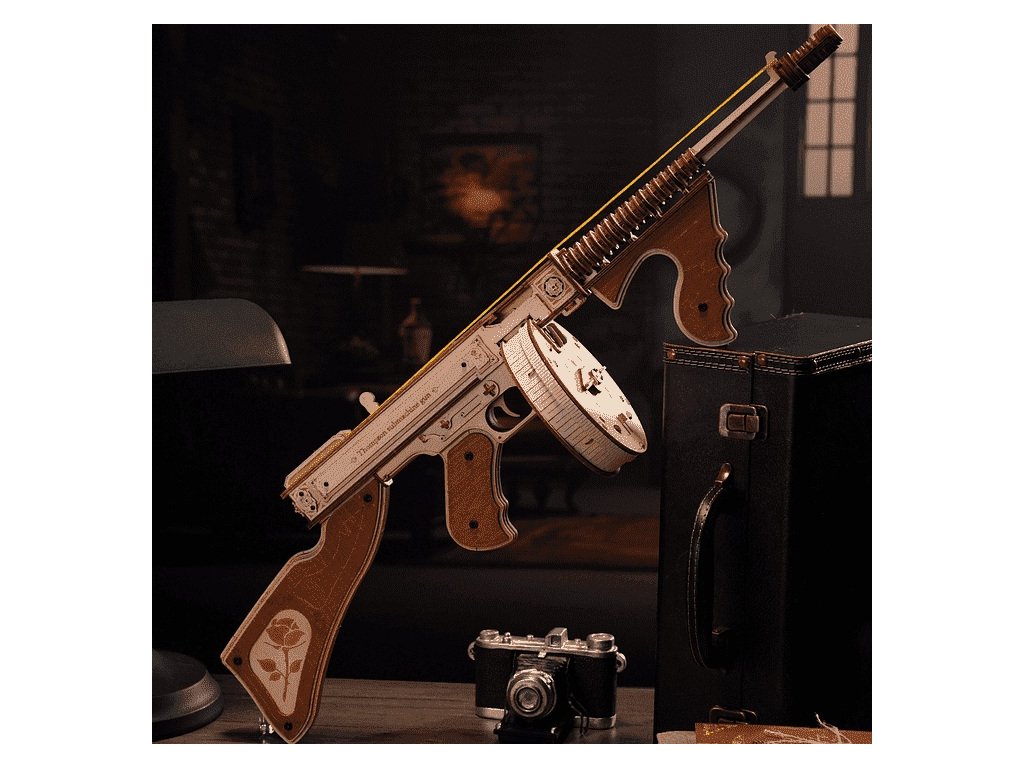 RoboTime 3D Dřevěné mechanické puzzle Samopal Thompson