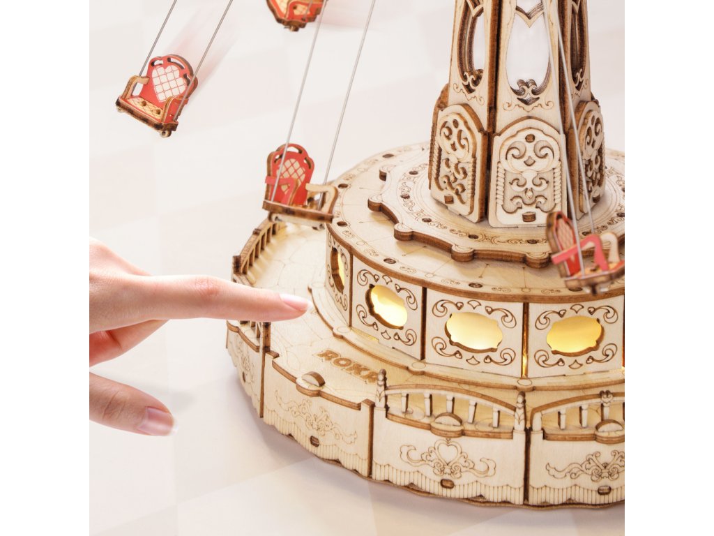 RoboTime 3D dřevěná skládačka hrací skříňky Řetízkový kolotoč barevný