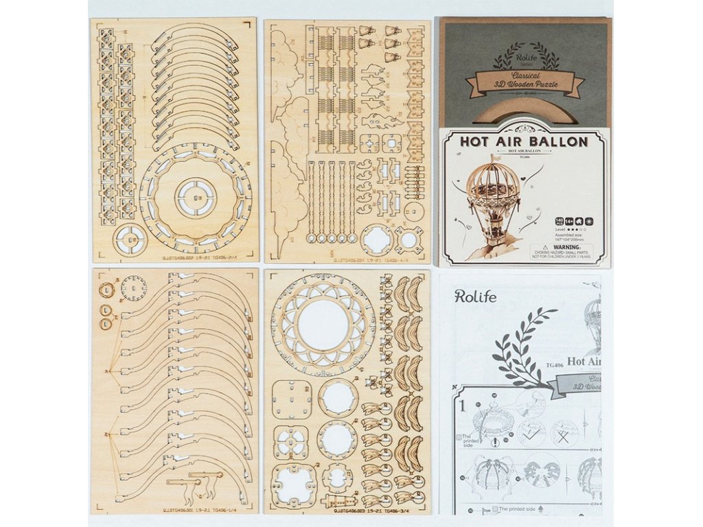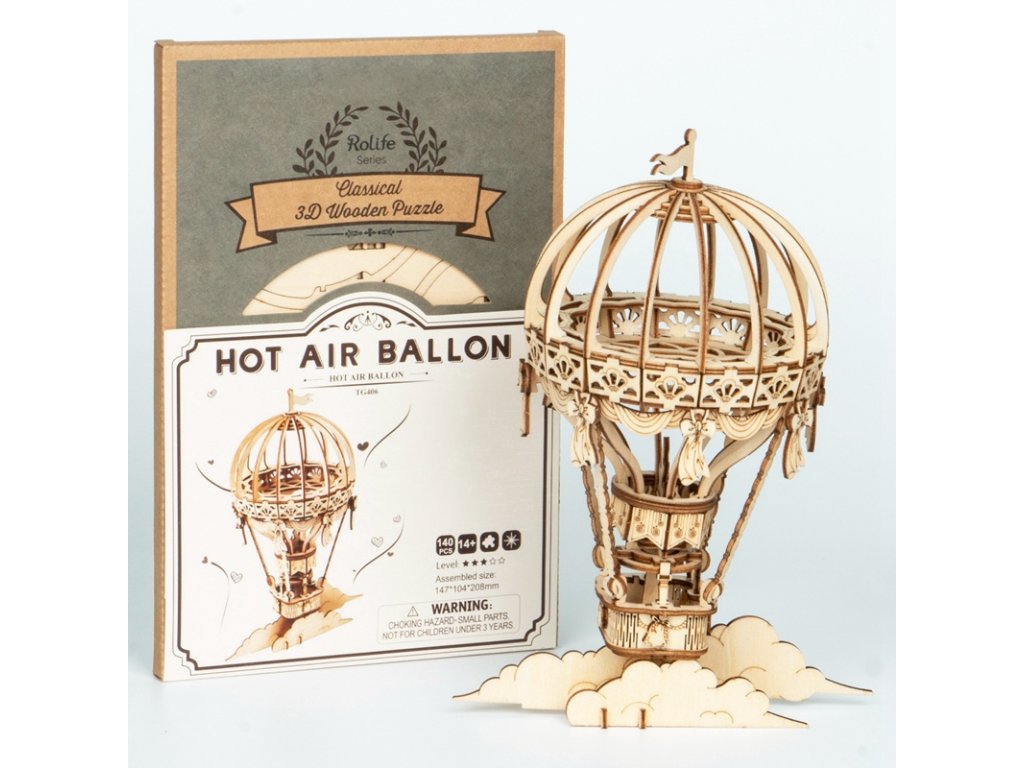 Detailní model horkovzdušného balónu. Patří do řady skládaček, které jsou určeny k vystavení, nejsou interaktivní a nemají žádné pohyblivé díly. Skládačka je dodávána v nesloženém stavu, balena v krabici. Vybaveno detailním návodem k sestavení. Hlavní vlastnosti:140 precizně vyřezaných dílkůnízká obtížnost sestaveníDoplňkové parametry