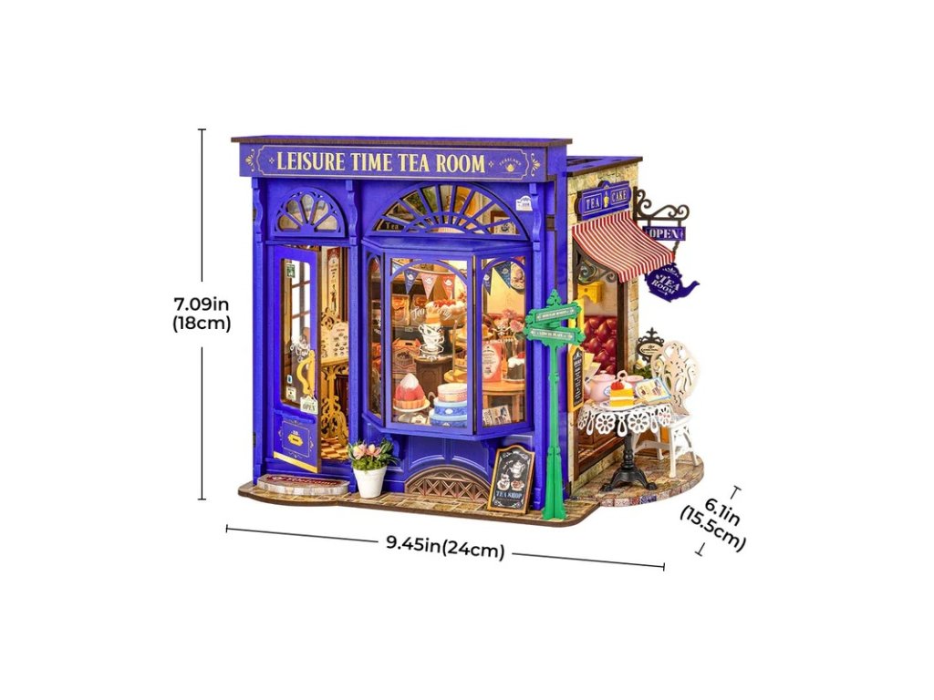 Cítíte tu vůni? Otevřete zářivě modré dveře a vejděte do anglické čajovny ve vintage stylu někde v Londýně. Usaďte se na prošívanou červenou koženou sedačku a vyberte si z menu. Dáte si lahodný koláč, pudink či dort? Nebo si raději vychutnáte šálek pravého anglického čaje venku u stolečku a budete sledovat, co se kolem děje? Přečtěte si nabídku dobrůtek pod osvětlením krásné nástěnné lampy ve tvaru květiny. Čajovna je propracována do nejmenších detailů jako dlažba, rustikální kovové cedule, plechovky s čajem, sklenice džemu či květiny na stole. Vychutnejte si atmosféru klidu a pohody, která je umocněna příjemným LED osvětlením. 3D skládačka je skvělý způsob, jak si užít kreativní a edukativní hraní a zároveň vytvořit nádherný model, který se může stát netradičním dárkem či ozdobou interiéru. Skládání 3D skládačky podporuje rozvoj jemné motoriky, prostorového myšlení a trpělivosti. Je to možnost, jak kombinovat zábavu se vzděláváním. Všechny přesně vyřezané dílky do sebe lehce zapadnou bez použití lepidla či nástrojů, aby výsledek byl stabilní a odolný. Skládačka je dodávána v nesloženém stavu, zabalená v krabici s podrobným návodem k sestavení. K napájení slouží 2x AAA /LR03/AM4 1,5 V (nejsou součástí balení). Hlavní vlastnosti: 304 dílkůdoba skládání 6 hodstřední obtížnost sestaveníLED osvětlenísestavení bez použití lepidla a nástrojůvýjimečný vzhledvhodné pro děti i dospělérozvíjí logické a motorické dovednostipodporuje trpělivost dětíideální jako dárek nebo jedinečná dekoracenapájení pomocí 2x AAA /LR03/AM4 1,5 V (nejsou součástí balení)Doplňkové parametry