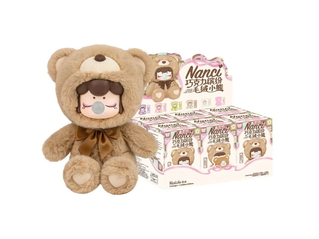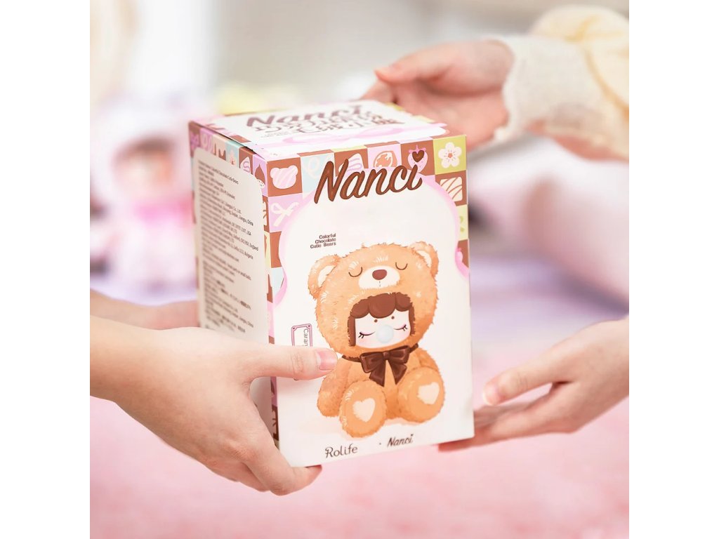 Cena je uvedena za 1 ks. Zasíláme náhodně. Obsah balení je překvapením. Roztomilá Nanci, plyšová panenka s typickým výrazem, si okamžitě získá pozornost malých i velkých sběratelů. Má zavřené oči, kulatý obličej a nafouknutou bublinu ze žvýkačky, která tvoří výrazný hravý detail. Celá panenka je provedena v jednom celku z měkkého plyšového materiálu, tvarovaného do podoby medvídka, s mašlí u krku. Na tlapkách jsou jemné vyšité detaily ve tvaru srdíček. Díky hebkému materiálu je panenka příjemná na dotek, vhodná k mazlení i jako dekorace do dětského pokoje. Panenky jsou dostupné v několika barevných variantách. Každý kus je balen samostatně a odesílá se náhodně, nikdo předem neví, jaká varianta se v krabičce ukrývá. Otevření balení je tak vždy malým překvapením. Hlavní vlastnosti: panenka v provedení plyšového medvídkaměkký a hebký plyšový materiálmašle u krku a vyšité detaily na tlapkáchvíce barevných variant náhodný výběr – překvapení v každé krabičcevhodná na hraní, mazlení i jako dekoraceideální jako dárekDoplňkové parametry