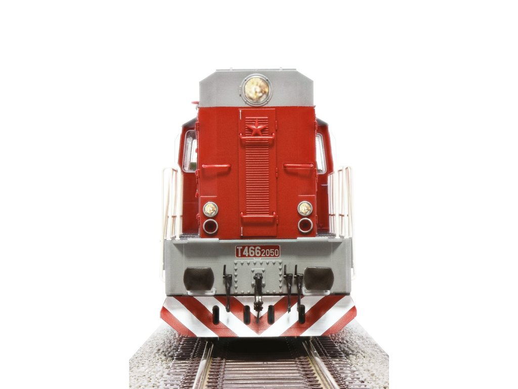 Motorová lokomotiva Československých státních drah T 466 2050. Nový design! Verze 1. série s hladkou boční stěnou kabiny. Detailně propracovaný model s mnoha samostatně použitelnými zásuvnými díly. Přehledný pohled do kabiny strojvedoucího. Filigránové bezpečnostní zábradlí. Sady kol s nízkými přírubami kol. Instalované osvětlení kabiny řidiče. V 70. letech 20. století měly bývalé Československé státní dráhy (ČSD) velmi potřebovaly výkonné nákladní vlakové dieselové lokomotivy pro středně těžké posunovací a traťové služby. Z průmyslové lokomotivy typu T 448 byla proto odvozena lehčí varianta T 466.2. Vyráběla se v ČKD v Praze od roku 1977 v devíti sériích (každá s drobnými odlišnostmi) v počtu 494 kusů a ČSD ji nasazovaly do provozu až do roku 1986. Hlavní vlastnosti: spojka Hřídel NEM 362 s kinematikou KKminimální rádius 358 mmepocha IV3 světlomety/2 koncová světla, v závislosti na směru jízdyzvuk - ANOLED světlomet - ANOpočet hnaných náprav 4počet náprav s trakčními pneumatikami 1 digitální rozhraní - PluX22typ dekodéru - MS450P22 Dokumentace: návod k obsluze (DE, EN,CZ)obecný dodatek (DE, EN, CZ) list náshradních dílů (DE, EN)konfigurační a funkční klíče (DE, EN)Doplňkové parametry