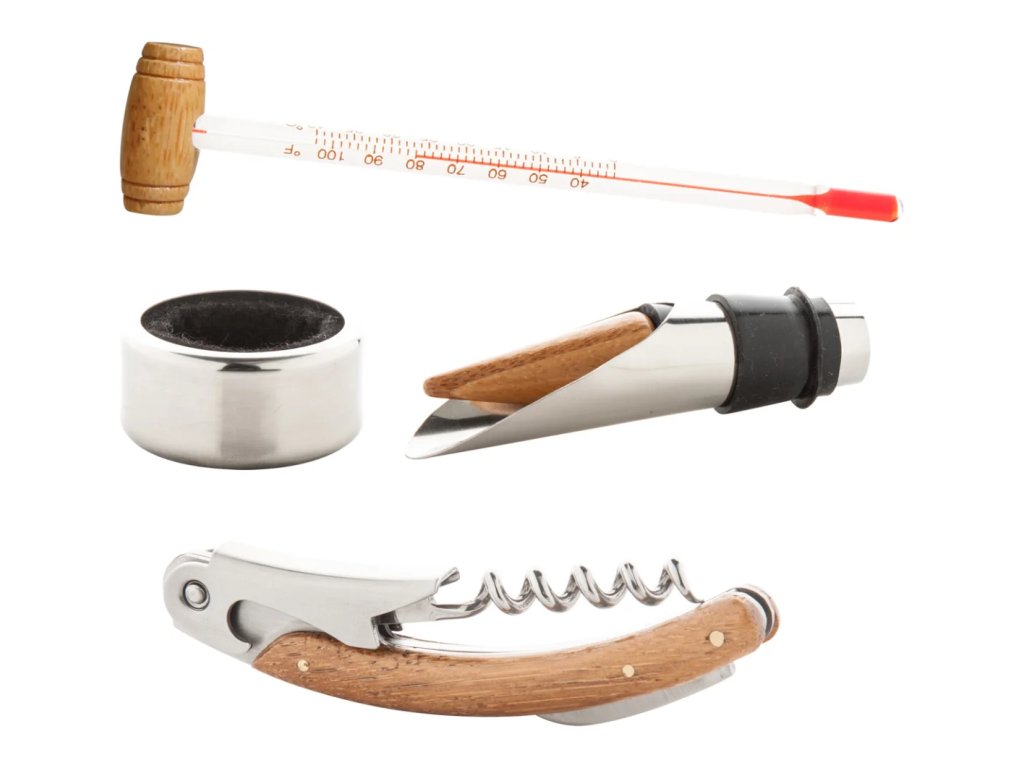 Každý by měl mít doma sadu na víno. Hodí se na rodinné sešlosti, oslavy, ale i poklidné večery. Naše sada je uschovaná ve stylové bambusové krabičce s originálním motivem. A co v ní je? Vývrtka, kroužek proti odkapávání, zátka a teploměr. Zkrátka vše, co je k degustačnímu zážitku zapotřebí.Doplňkové parametry