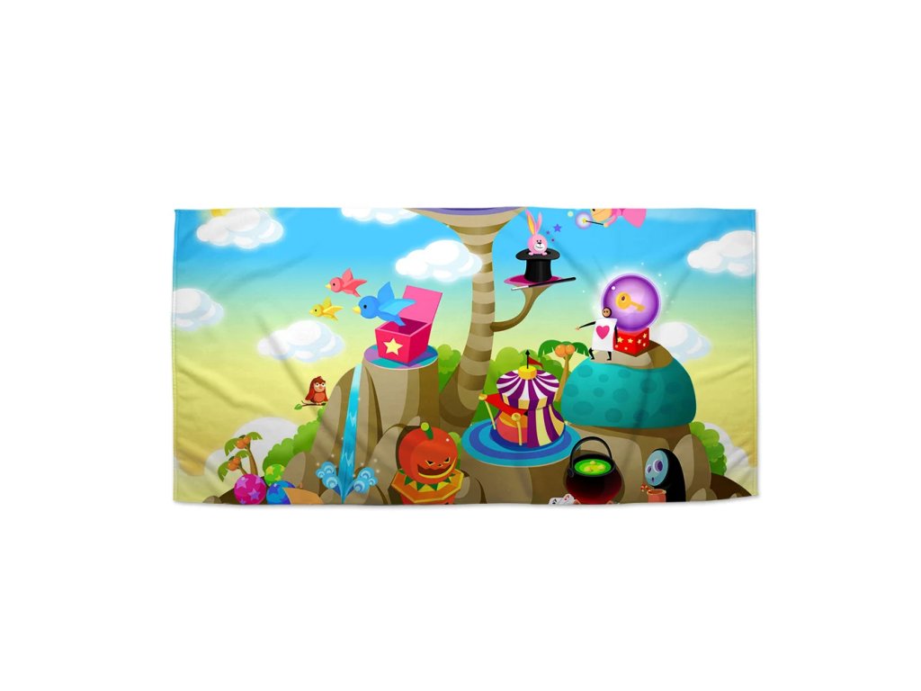 Potisk se nachází na vrchní straně ručníku, který je 100% polyester. Spodní strana je čistě bílá 100% bavlna. Tento motiv nabízíme ve třech velikostech a to 30x50 cm, 50x100 cm nebo 70x140 cm. Je vyroben z měkkého, příjemného materiálu. Vyniká povrchovou úpravu proti tvoření žmolků. Okraje jsou prošívané.