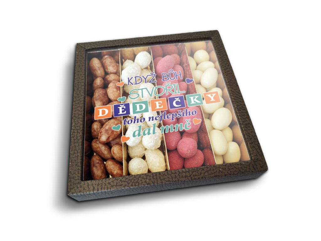Je libo ideální kombinaci chutí mandlí a bílé čokolády obalené v jahodovém prášku nebo tiramisu mandlí v mléčné čokoládě s karamelovou příchutí? I to najdete v naší krabičce s originálním věnováním. Na výběr máte ze dvou balení. Jaký degustační zážitek dopřejete sobě i svým blízkým?Doplňkové parametry