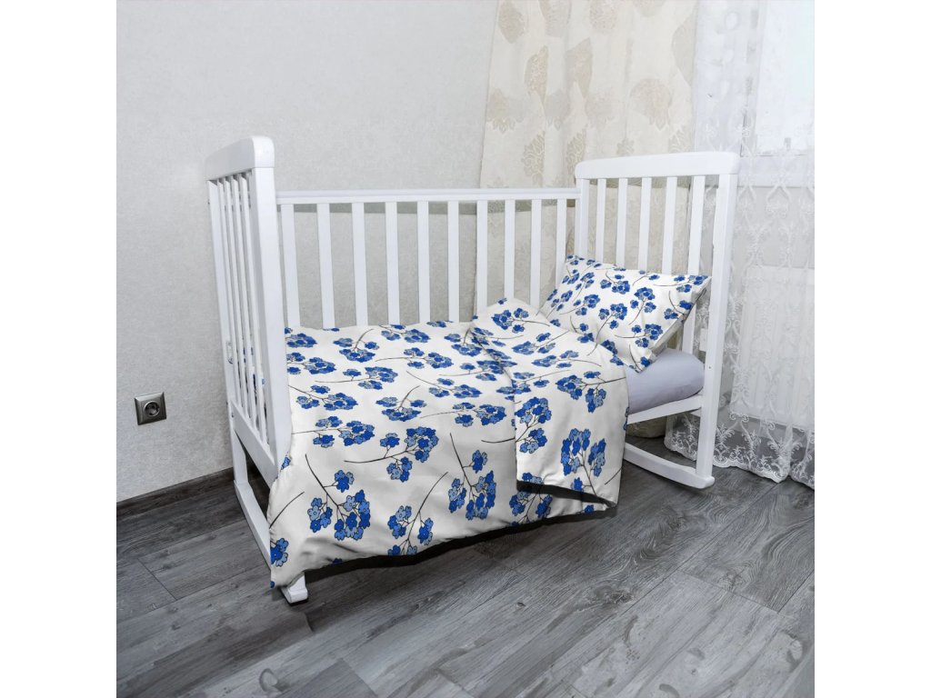 Sablio Mikroplyšové dětské povlečení do postýlky Modré kvítí