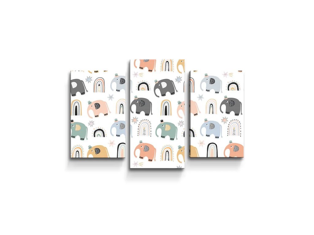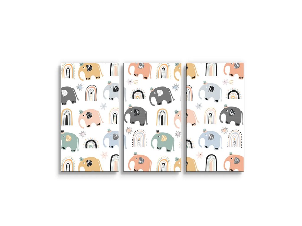 Sablio Obraz - 3-dílný Animovaní sloni - 120x80 cm