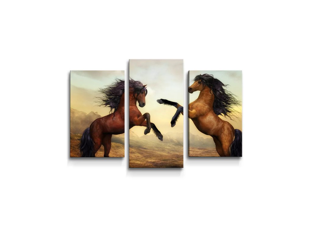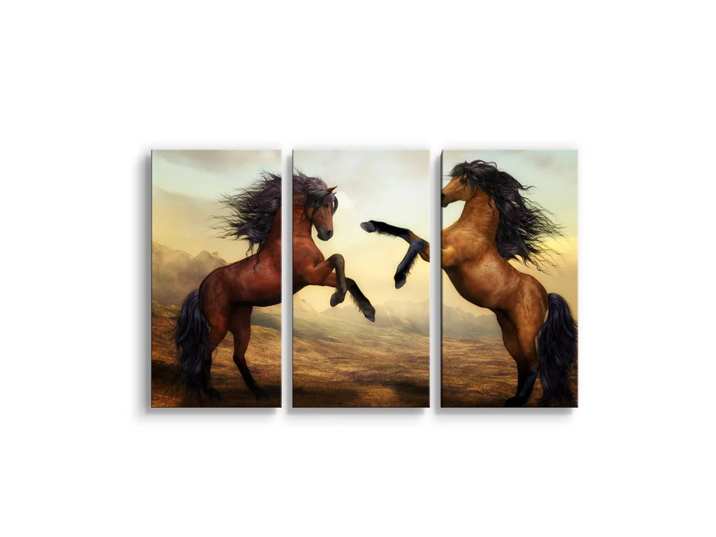 Sablio Obraz - 3-dílný Vzpínající se koně - 120x80 cm