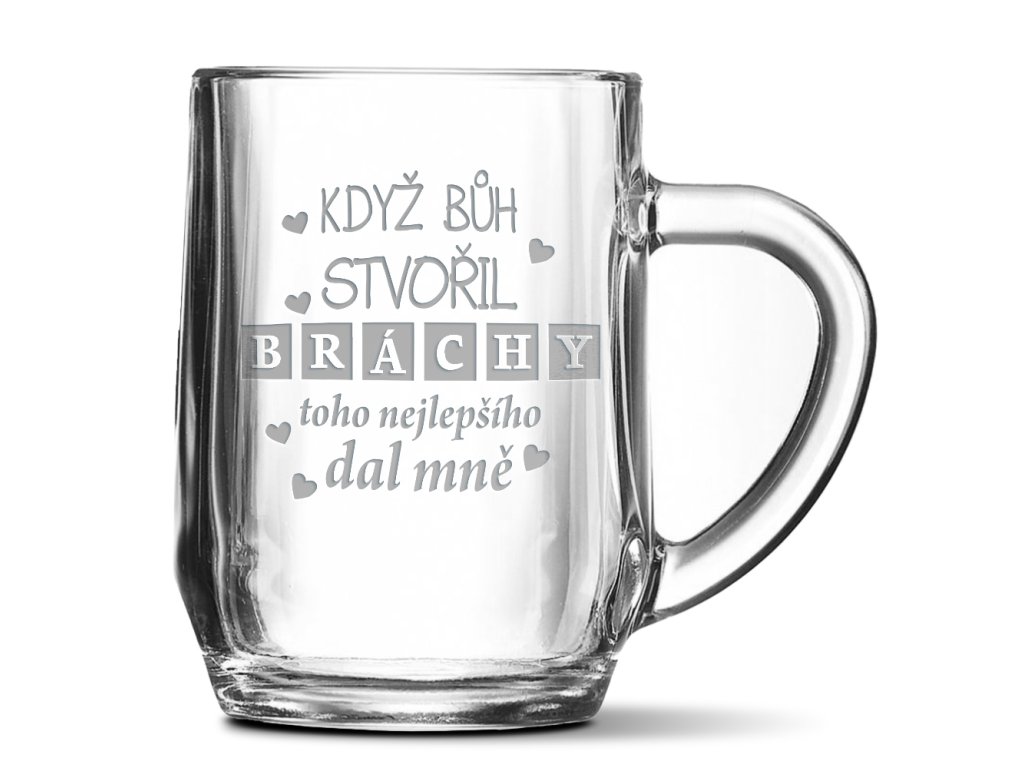 Naše půllitry jsou ideálním dárkem nejen pro milovníky piva. Oceníte je na párty i jako výbavu v domácnosti. To samé i vaši blízcí. Originální motivy gravírujeme přímo na povrch. Nemusíte se bát, že tento půllitr jen tak rozbijete, je totiž ze silného odolného skla. Gravírování je z jedné strany, takže pravák ho má při pití na straně k sobě.Doplňkové parametry