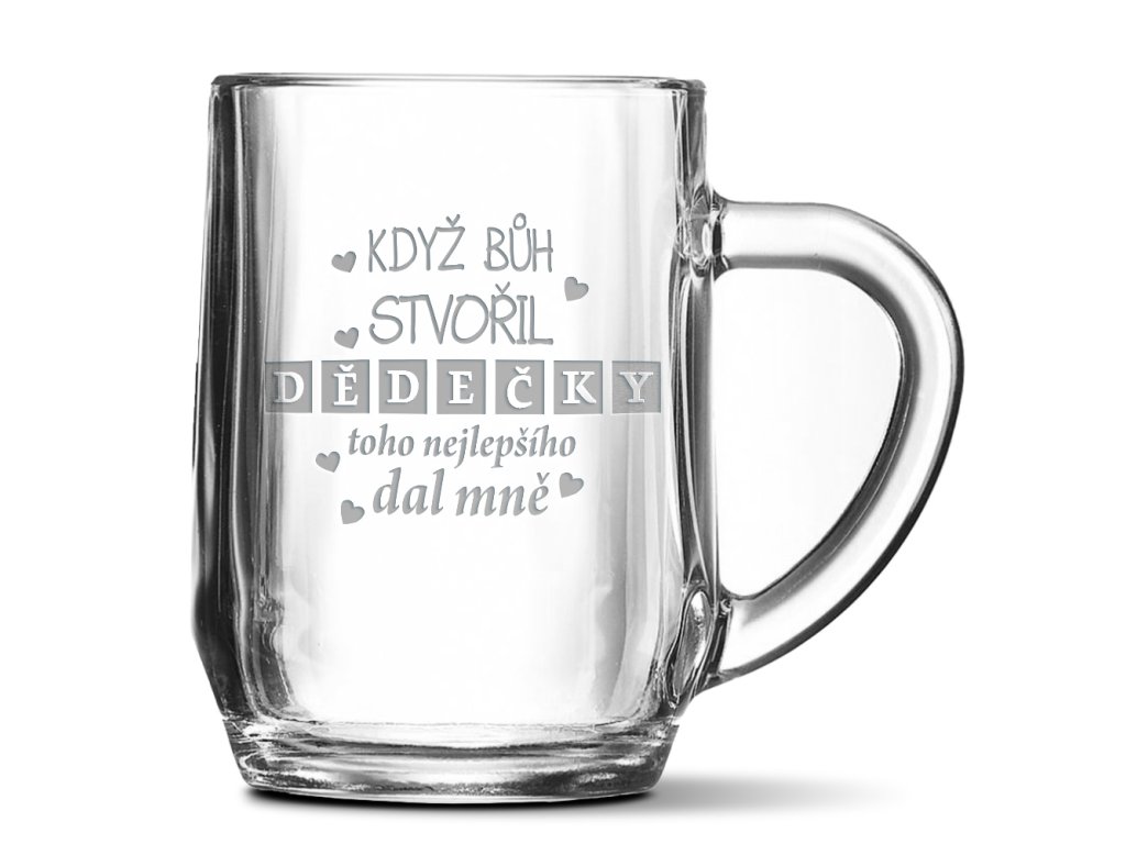 Naše půllitry jsou ideálním dárkem nejen pro milovníky piva. Oceníte je na párty i jako výbavu v domácnosti. To samé i vaši blízcí. Originální motivy gravírujeme přímo na povrch. Nemusíte se bát, že tento půllitr jen tak rozbijete, je totiž ze silného odolného skla. Gravírování je z jedné strany, takže pravák ho má při pití na straně k sobě.Doplňkové parametry