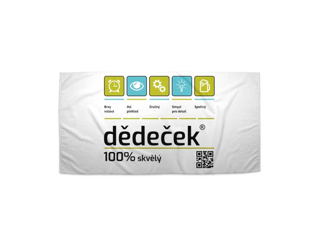 Ručník s kvalitním potiskem, který nevybledne ani po dlouhých letech používání. Potisk je na vrchní straně ručníku (100% polyester), druhá strana je čistě bílá 100% bavlna. Povrch je opatřen úpravou proti tvoření žmolků.Doplňkové parametry