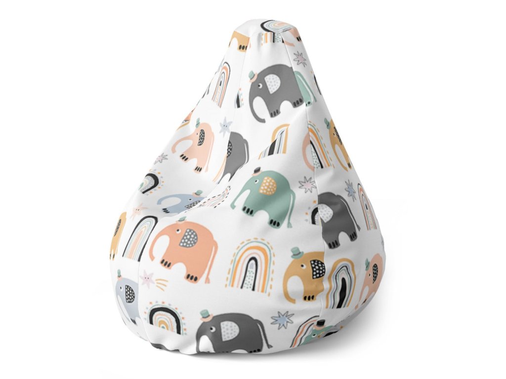 Sablio Sedací vak Pear Animovaní sloni - 140 x 100 x 25 cm