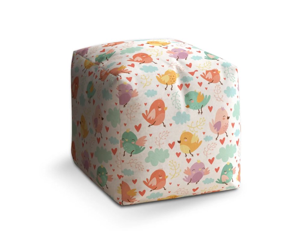 Sablio Taburet Cube Oblak s ptáčky: 40x40x40 cm