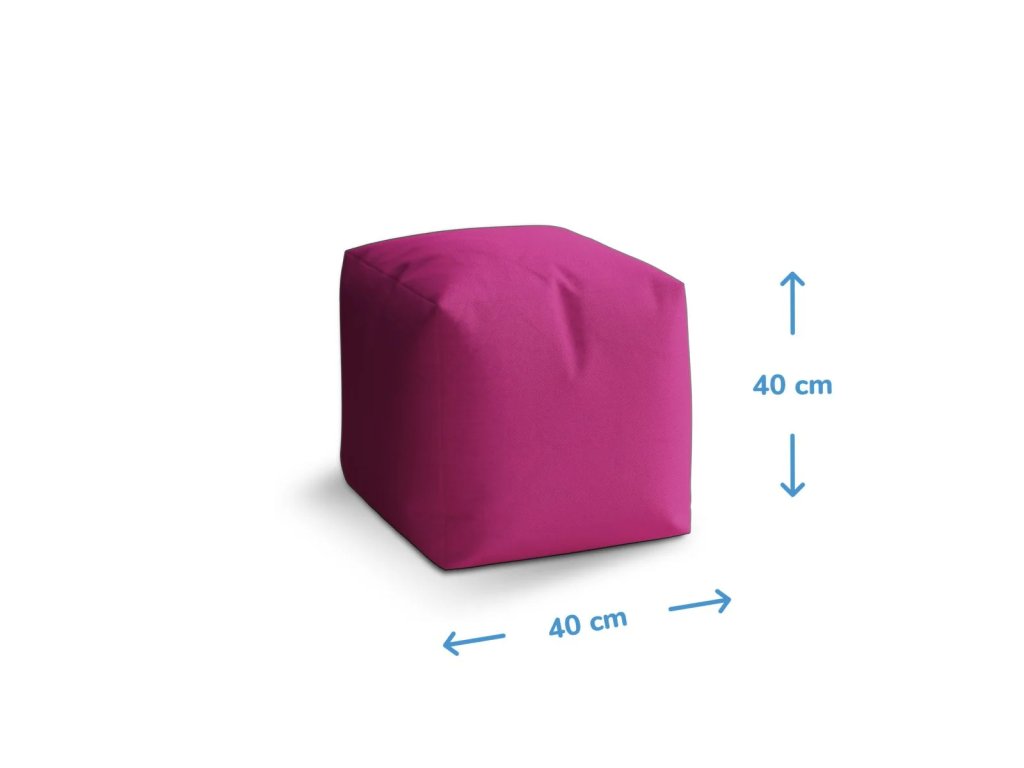 Taburet Cube je nejvhodnějším bytovým doplňkem – oceníte ho v ložnici, dětském pokoji, předsíni nebo obývacím pokoji, ale i venku na terase. Všechny taburety vyrábíme z příjemné a odolné látky. Potah můžete kdykoli a jednoduše vyprat. Sedací vak ve tvaru kostky (40x40x40 cm) využijete i jako pohodlnou podložku pro nohy.Doplňkové parametry