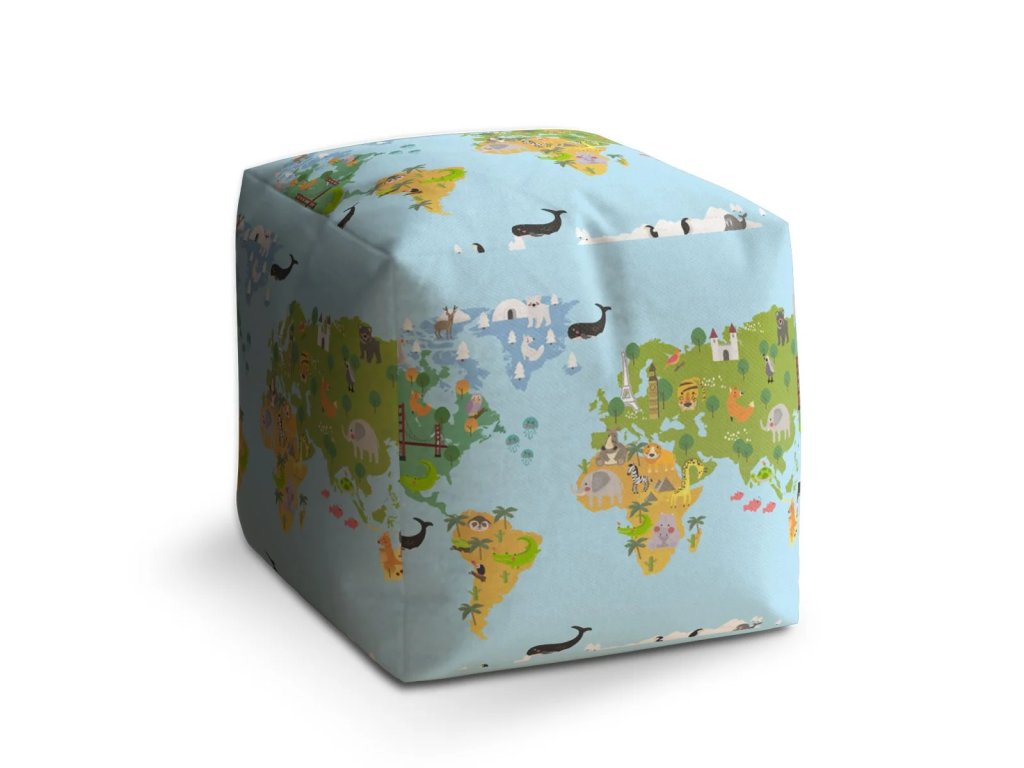 Sablio Taburet Cube Zvířecí mapa světa: 40x40x40 cm
