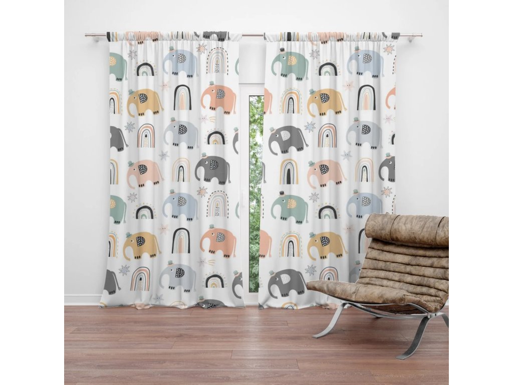 Sablio Závěs Animovaní sloni: 2ks 140x250cm