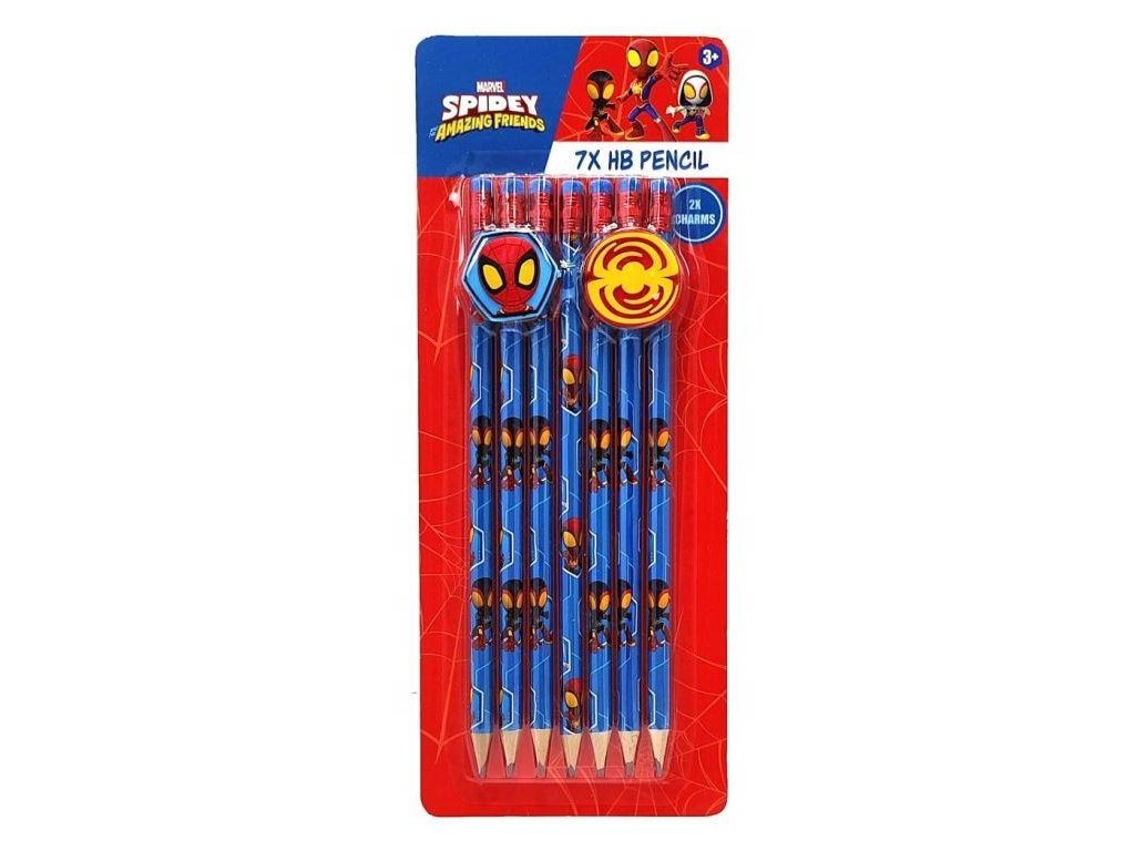 Sada 7 ks tužek s gumou a dvou klipů s motivem Spidey. Rozměr balení: 25 x10 cm. Pro děti od 3 let. Oficiální licence. W&O Products B.V.Hecto 36902 KM Zevenaar, Holandia info@wo-products.nlDoplňkové parametry