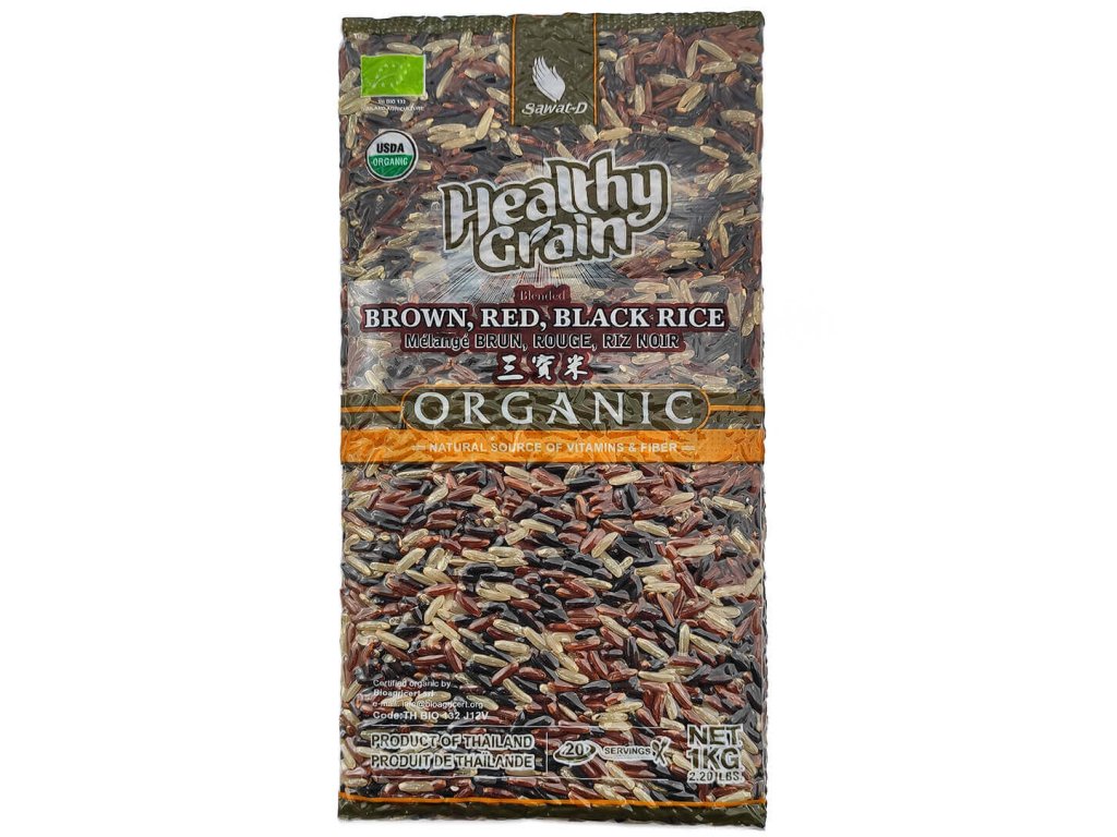 Sawat-D Organic hnědá, červená a černá rýže je vynikající kombinace kvalitních odrůd rýže pro zdravý a vyvážený jídelníček. Tento produkt zahrnuje bio hnědou jasmínovou rýži, která je známá svou jemnou vůní a chutí, bio červenou cargo rýži, která je bohatá na vlákninu a bio černou rýži, která je bohatá na přírodní antioxidanty a bílkoviny.