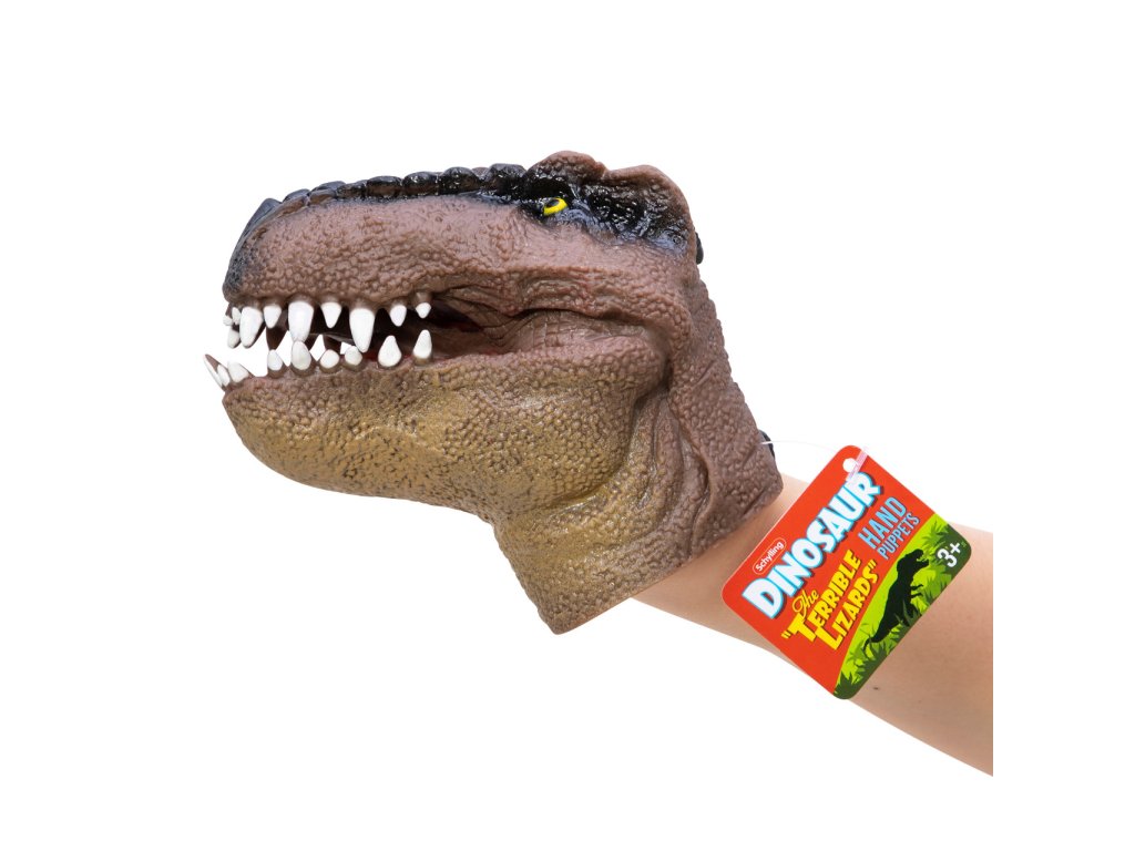 Cena je uvedena za 1 ks. Hrozivá rána. Voda se vlní. Země se třese. To je Tyrannosaurus Rex! Zahrajte si své vlastní divadlo s maňáskem dinosaura. Vyrobeno z kvalitní netoxické pružné pryže, k dispozici jsou tři druhy Tyrannosaurus Rex (zelený, červený a hnědý). Pružný materiál znamená, že ho lze tvarovat do nejrůznějších veselých, děsivých a zábavných výrazů, což dodává těmto dinosaurům skutečný vzhled a pocit. Tito jedineční ruční maňásci pro děti jsou perfektním dárkem pro mladé milovníky dinosaurů, ale jsou také ideální pro školy, párty, speciální potřeby, propagační akce a mnoho dalšího. Jsou dokonce užitečné pro učitele, kteří je mají ve třídě, aby mohli učit lekce o jurské době. Hlavní vlastnosti: podporuje motoriku, kreativitu a smyslové vnímánív barvě zelené, červené nebo hnědézábava pro celou rodinujedna velikostDoplňkové parametry