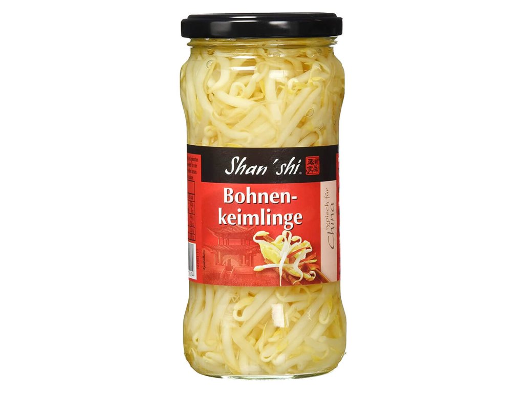 Klíčky fazolí mungo, voda, cukr, sůl, antioxidant: kyselina L-askorbová, regulátor kyselosti: kyselina citrónová.