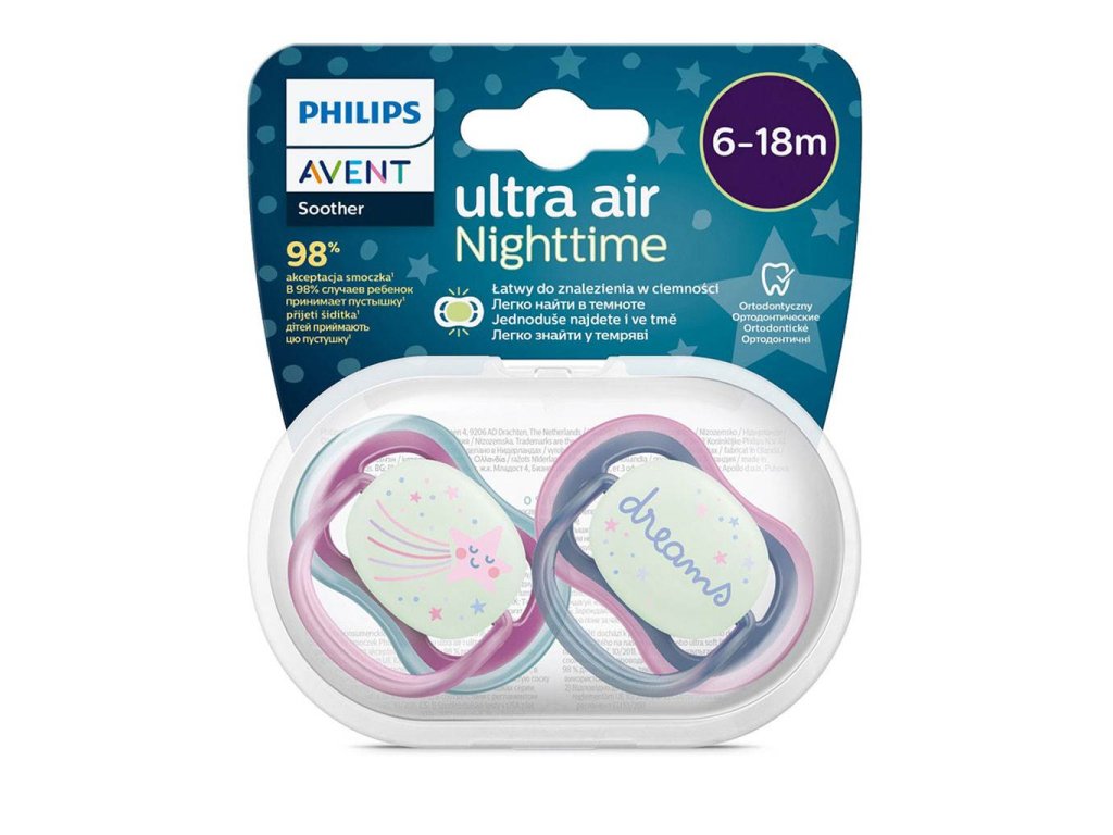 Šidítko Avent Ultra air Night 2ks 6- 18 m holčička